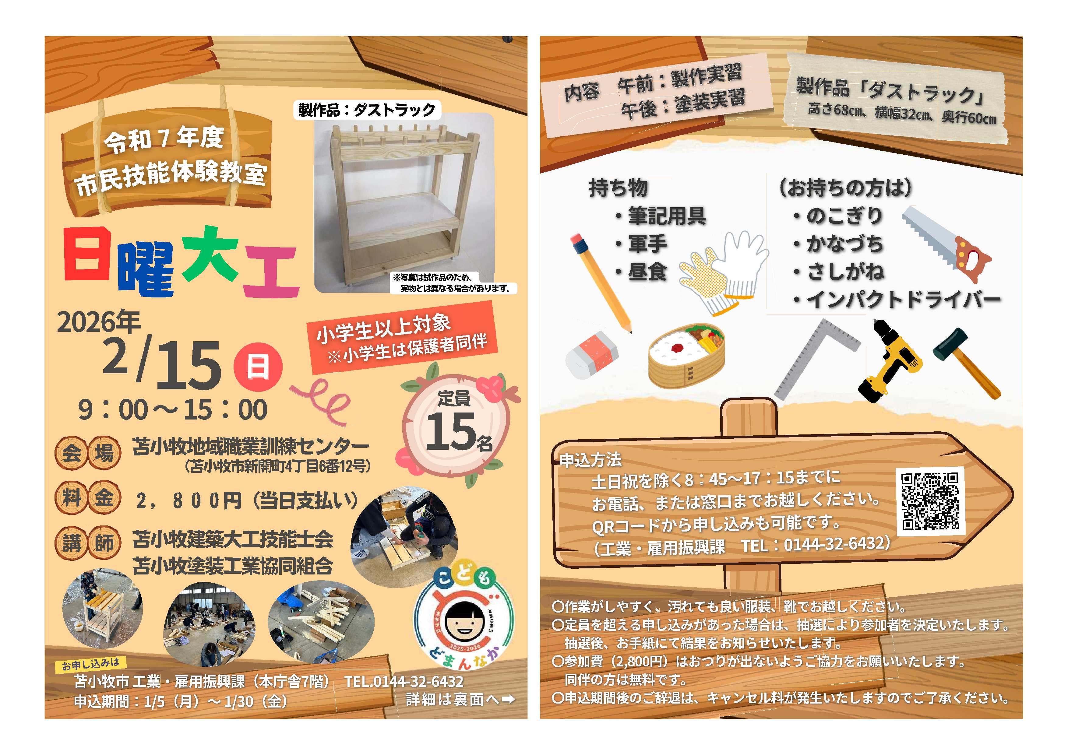 令和7年度市民技能体験教室「日曜大工」の開催について