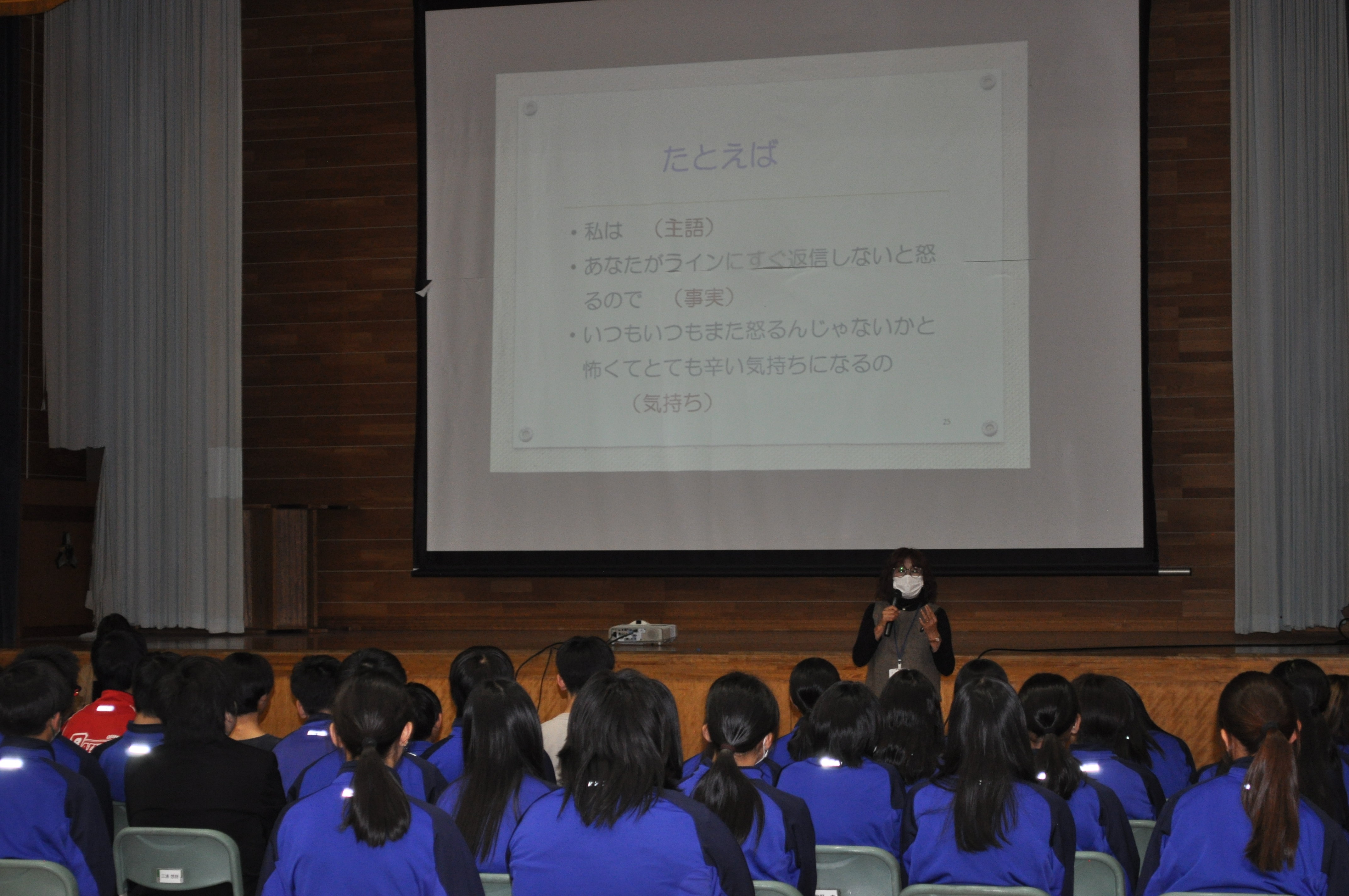 「自分のこころを大切に」をテーマに、本校のスクールカウンセラーによる講話が行われました。1年生は「ストレスについて知る」、2年生は「コミュニケーションのすすめ」、3年生は「自分を知るということ」という内容で実施しました。
