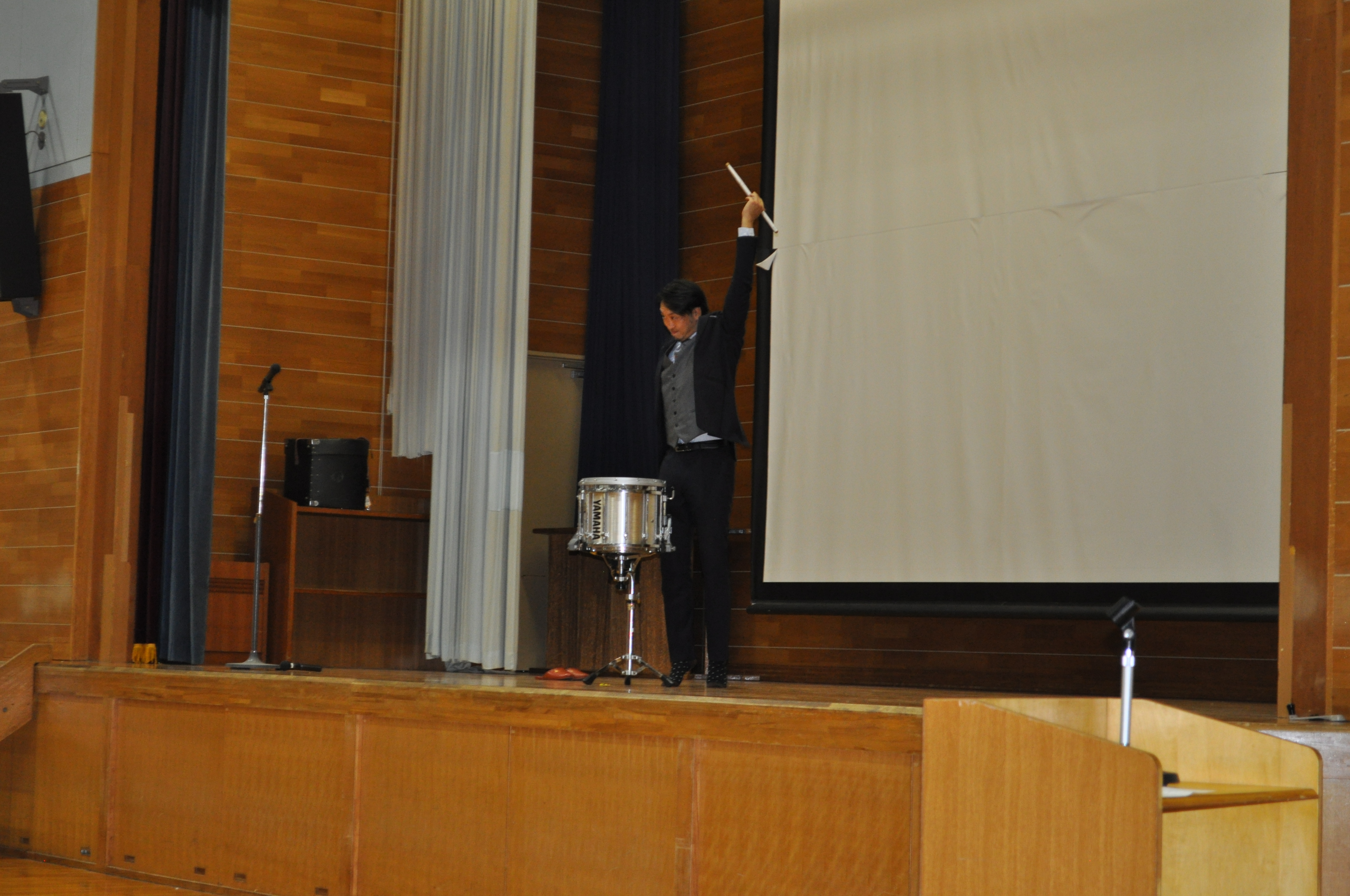 パーカッショニスト・スネアドラマーの平井さんをお招きして、全校生徒対象のこころの授業を開催しました。当たり前のように感じてしまう生きていることの有り難さや、家族や友だちと一緒にいることができる有り難さなど再確認できたのではないでしょうか。最後に世界大会に入賞する腕前のスネアドラムを演奏していただき、素晴らしい演奏技術に引き込まれました!