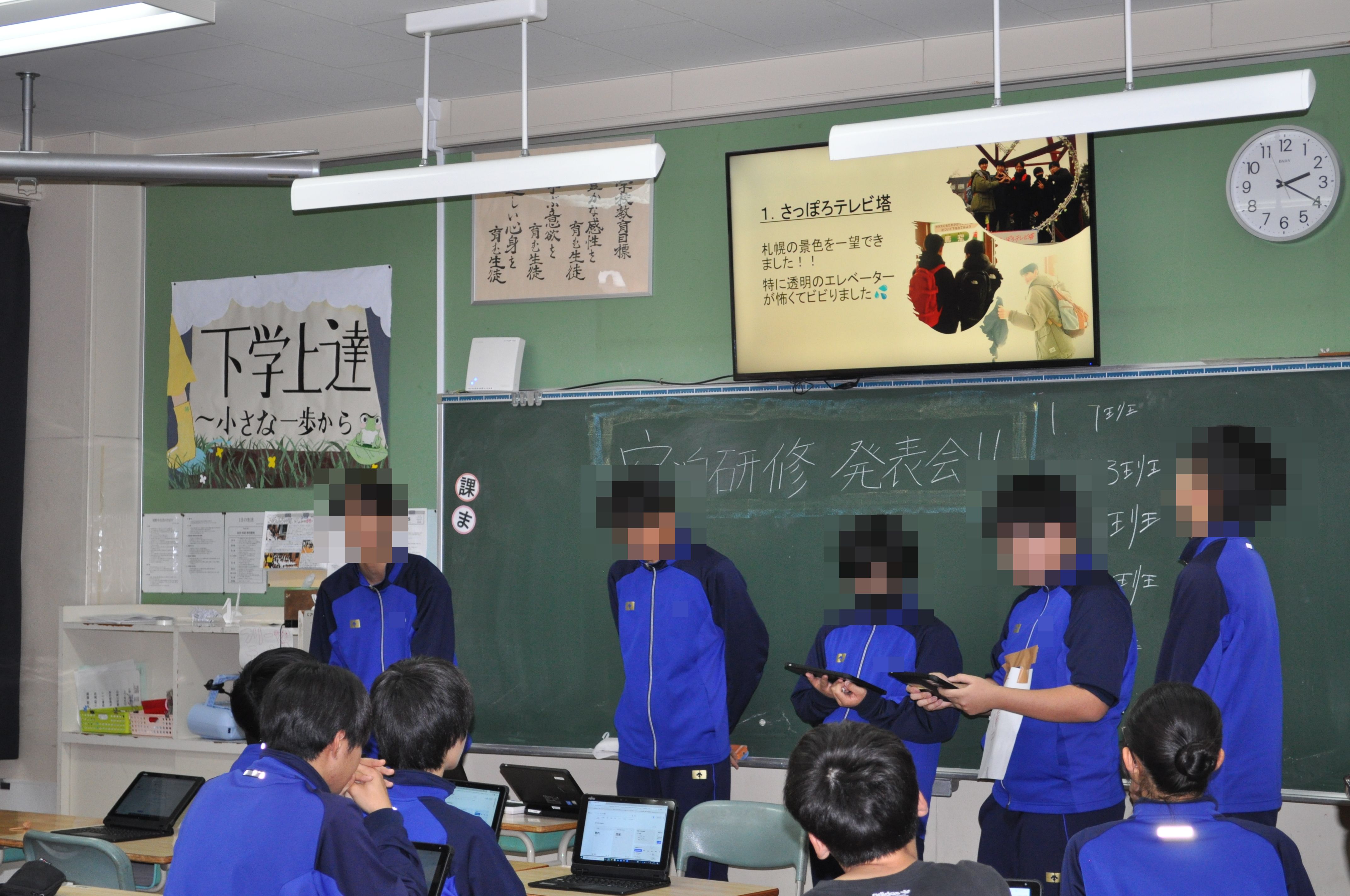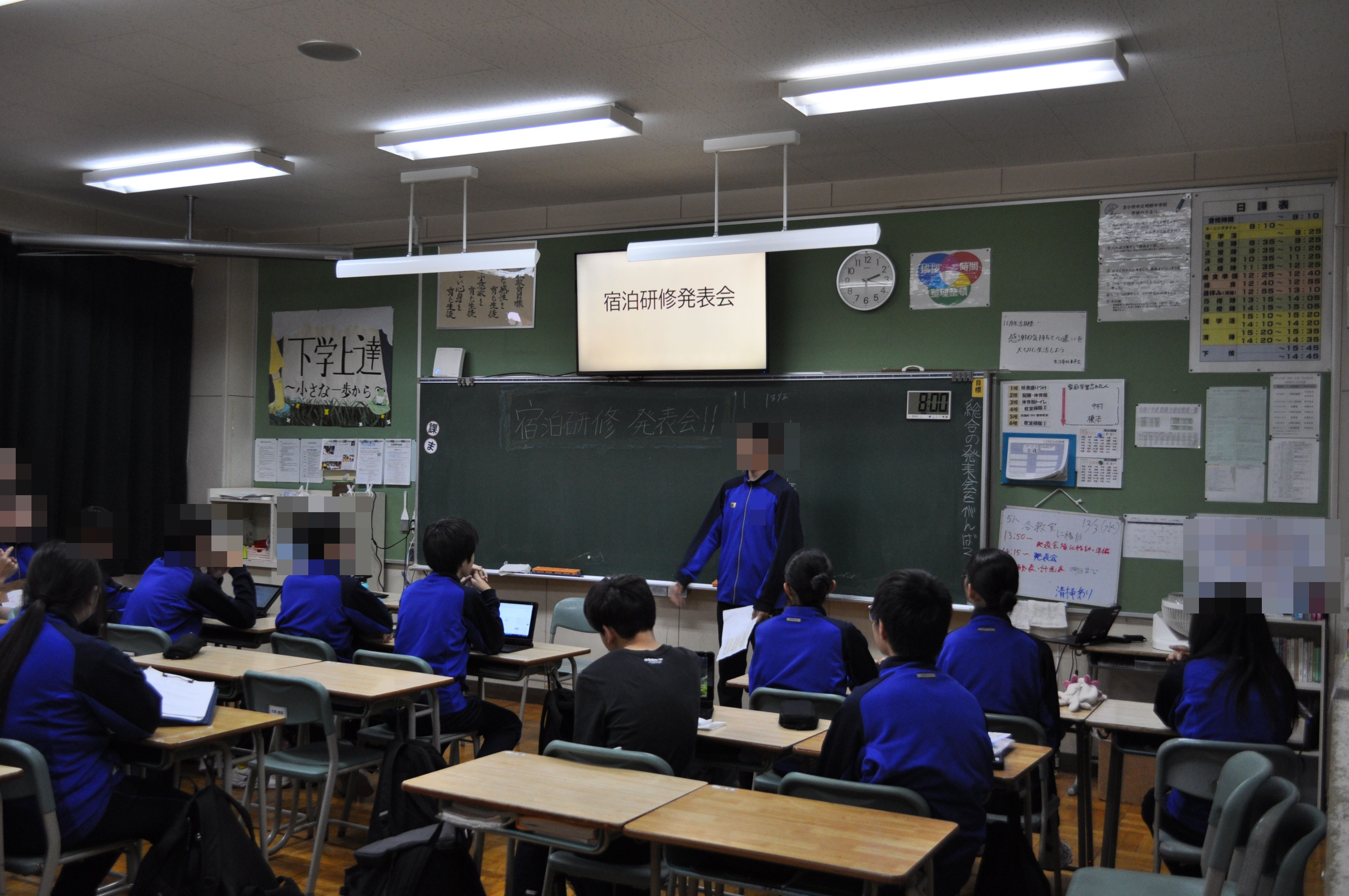 2年生の宿泊研修発表会が行われました。平日ではありましたが、多くの保護者の方々にも参観していただくことができました。どの班もよくまとまられており、立派な発表でした。