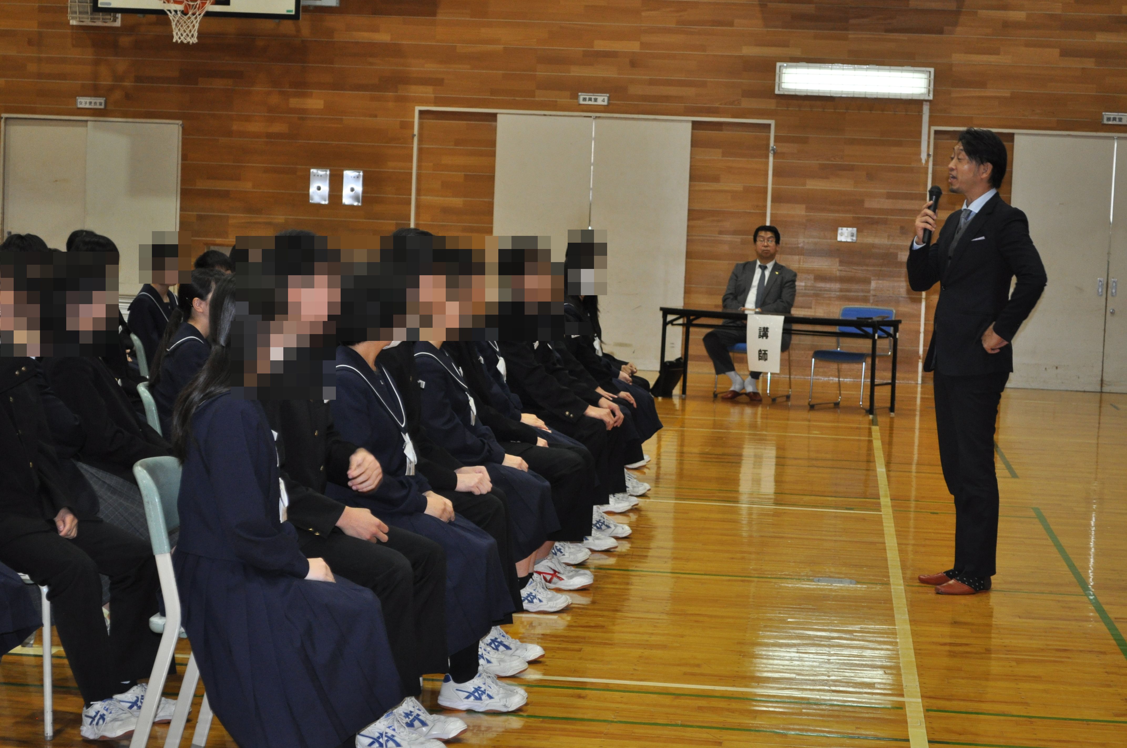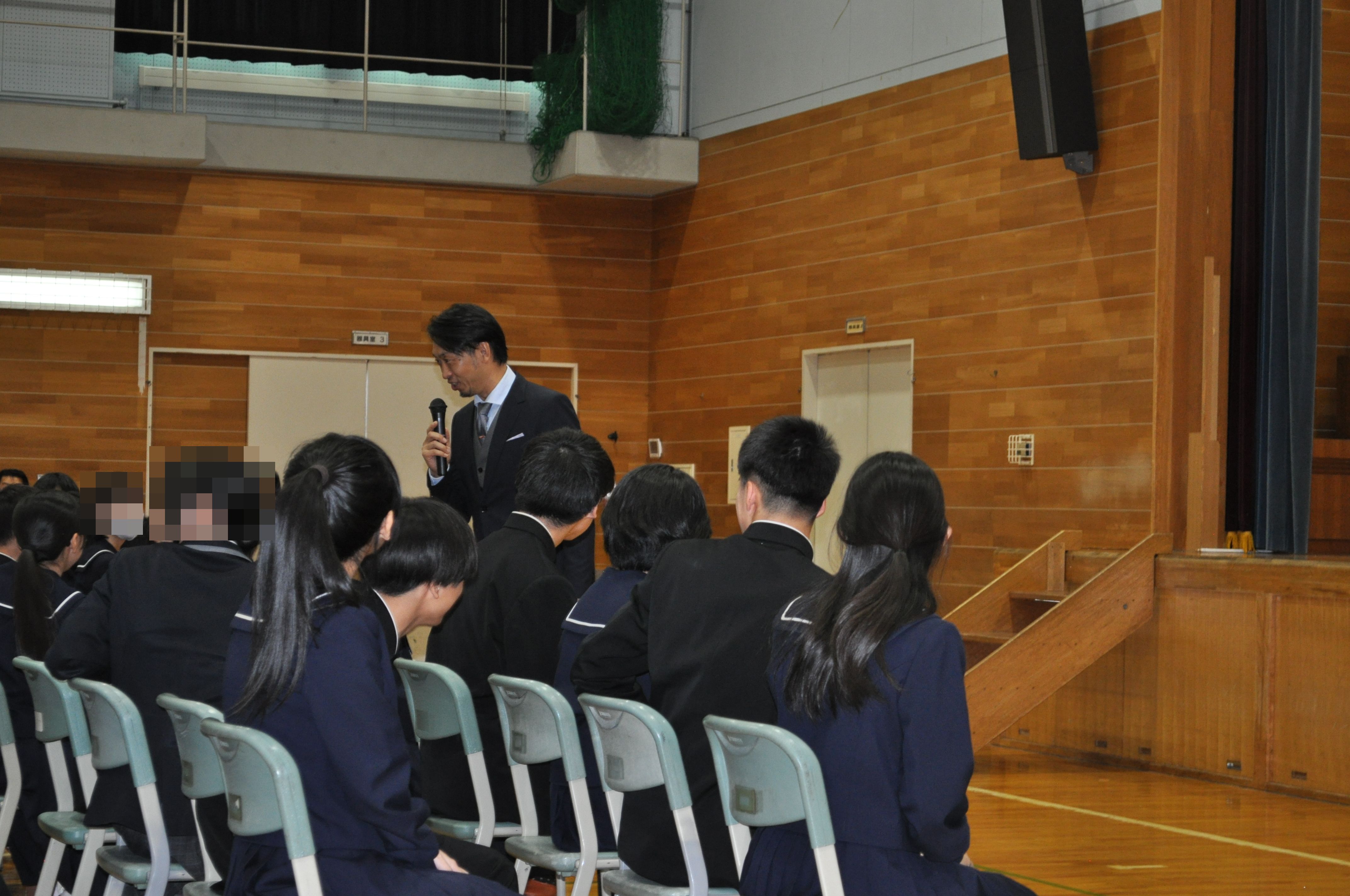 3年生の生徒対象にした高校説明会を開催しました。国立高専をはじめ、市内の公立高校や私立高校など全部で6校の担当者様に来校していただき、各校の特色など説明していただきました。ご多忙の中来校ありがとうございました。