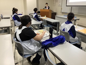 1年生対象の防犯教室が行われました。苫小牧警察署生活安全課の方が講師として来校し、不審者対策や自転車の盗難、SNSによる個人情報流出について講義してくれました。ありがとうございました。