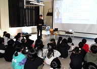夢をかなえるためには、いろんなことに興味をもち、夢や願いを声に出して言うこと、そして、「かなえたい夢があるなら、言い続けること」が大事。それを実行して夢をかなえた講師の先生のお話には説得力があり、教室には熱い空気が流れ、子どもたちの心に深く刺さりました。講師の先生には、お忙しい中、貴重なお話をいただき、感謝いたします。
