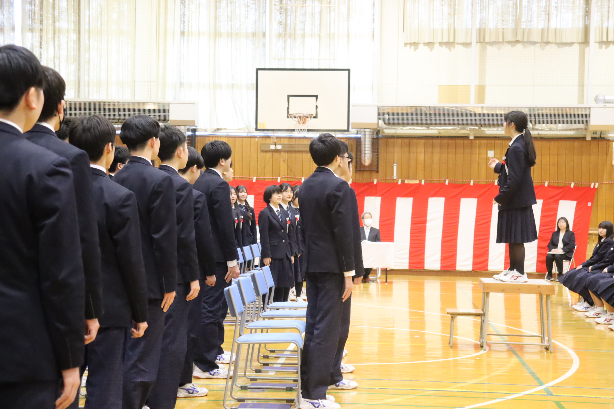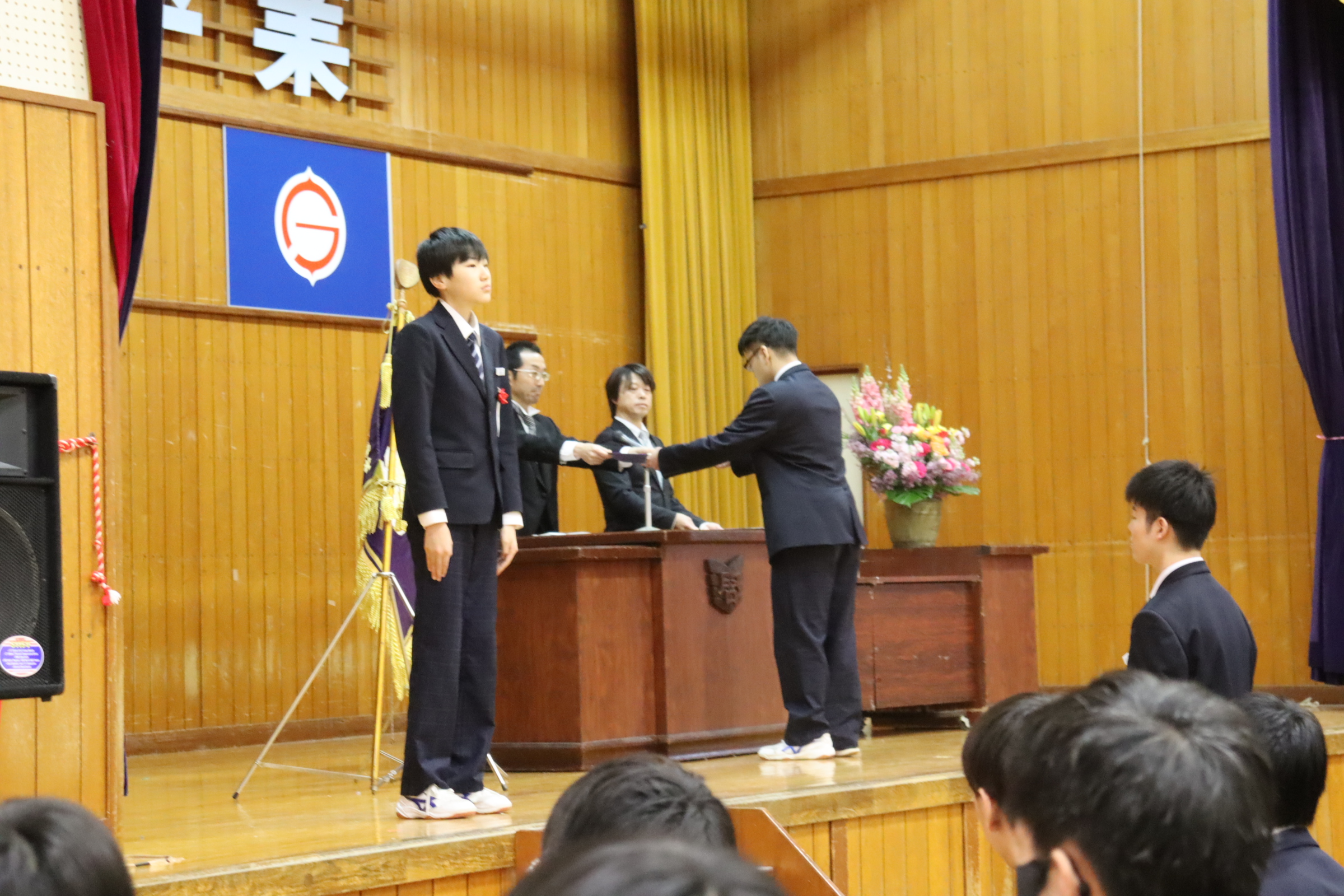 認証式が実施されました。後期の生徒会役員、学級役員、常任委員が認証状を受け取り、本日から後期の生徒会活動がスタートしました。