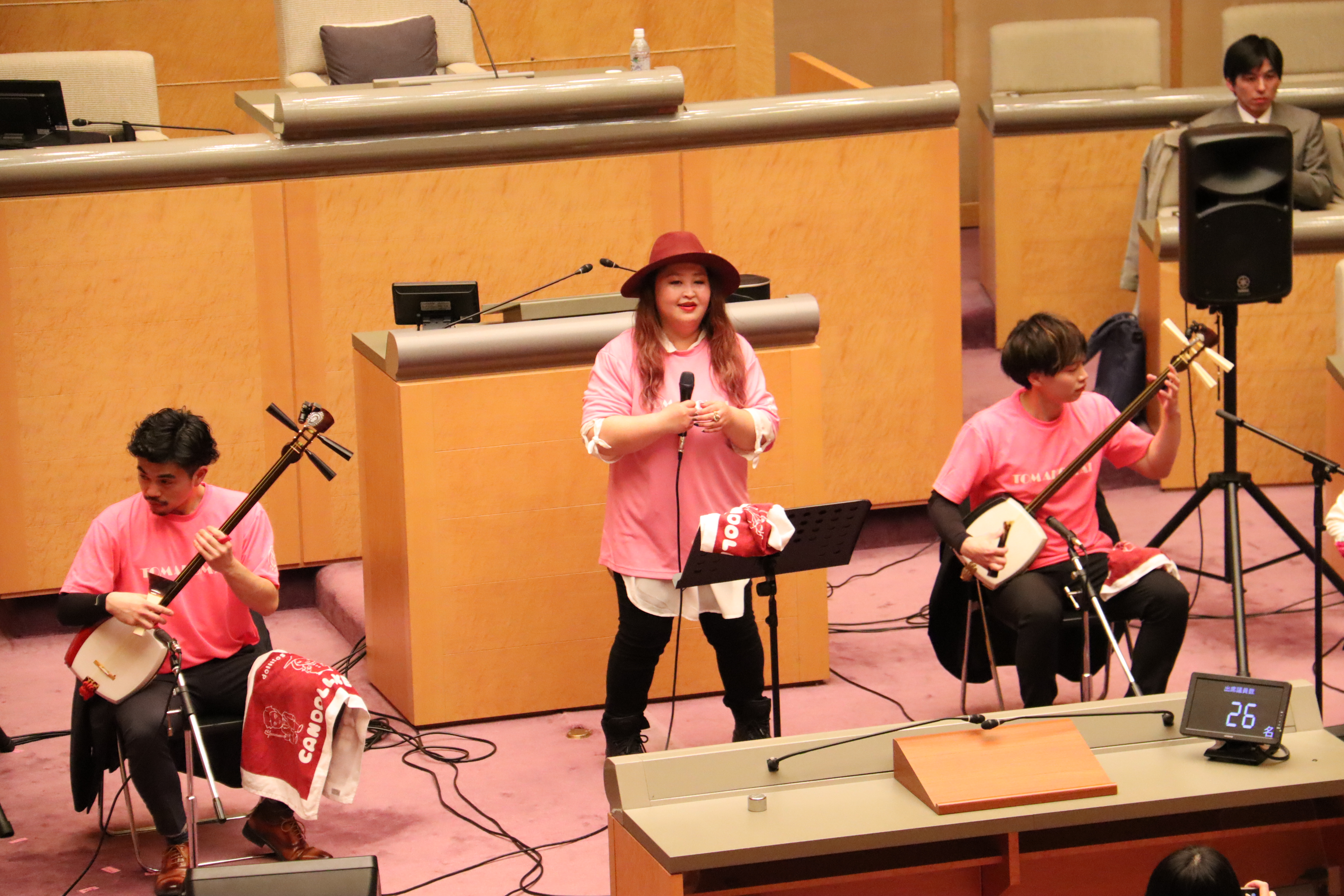 苫小牧市議会では、令和8年2月18日に第8回議場コンサートを開催しました。第8回目の出演者は、とまこまい観光大使であり、こどもどまんなかアクションアンバサダーであるCANDOLLKEY×TIES(キャンドールキータイズ)さんにご出演いただきました。