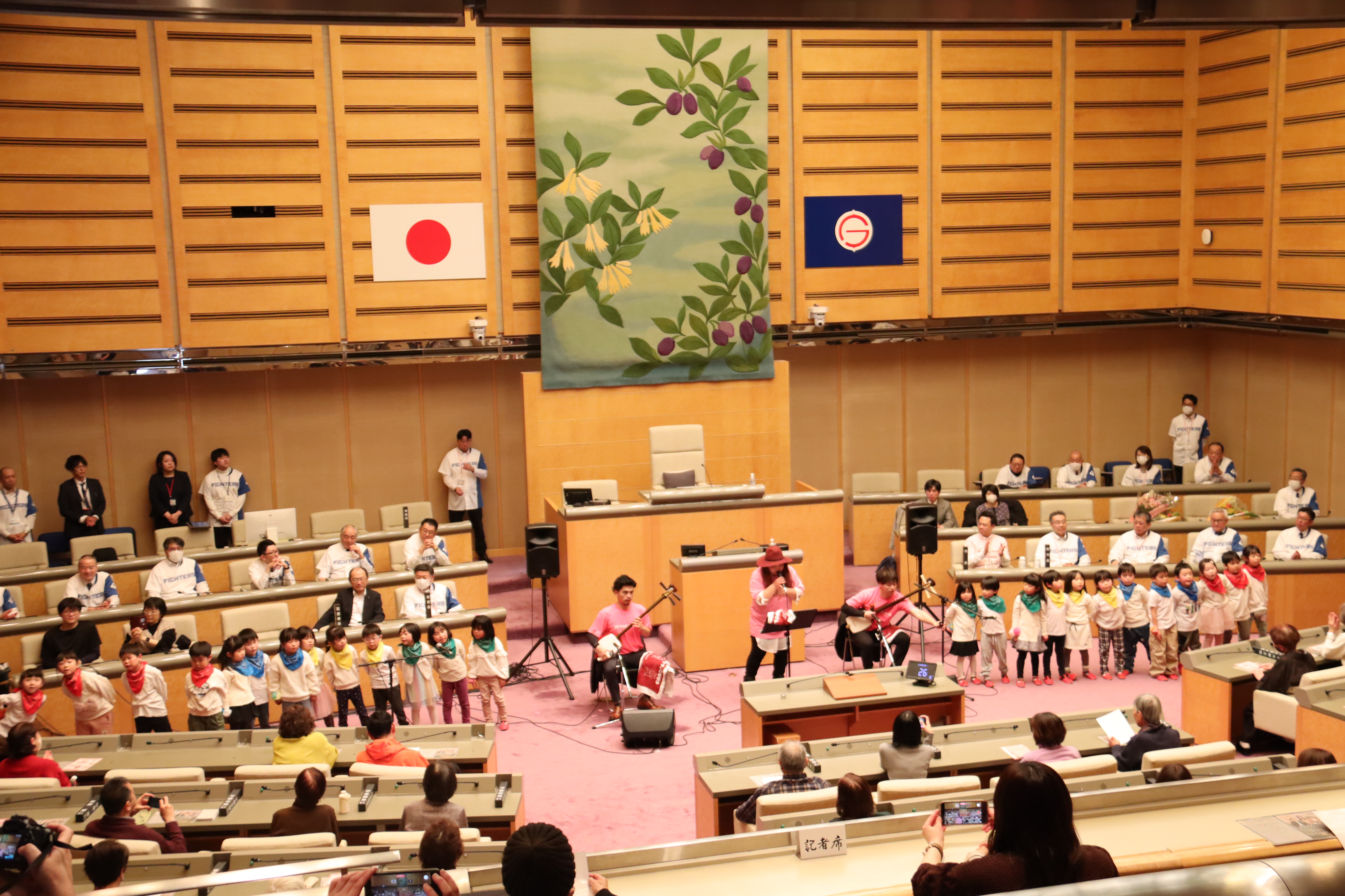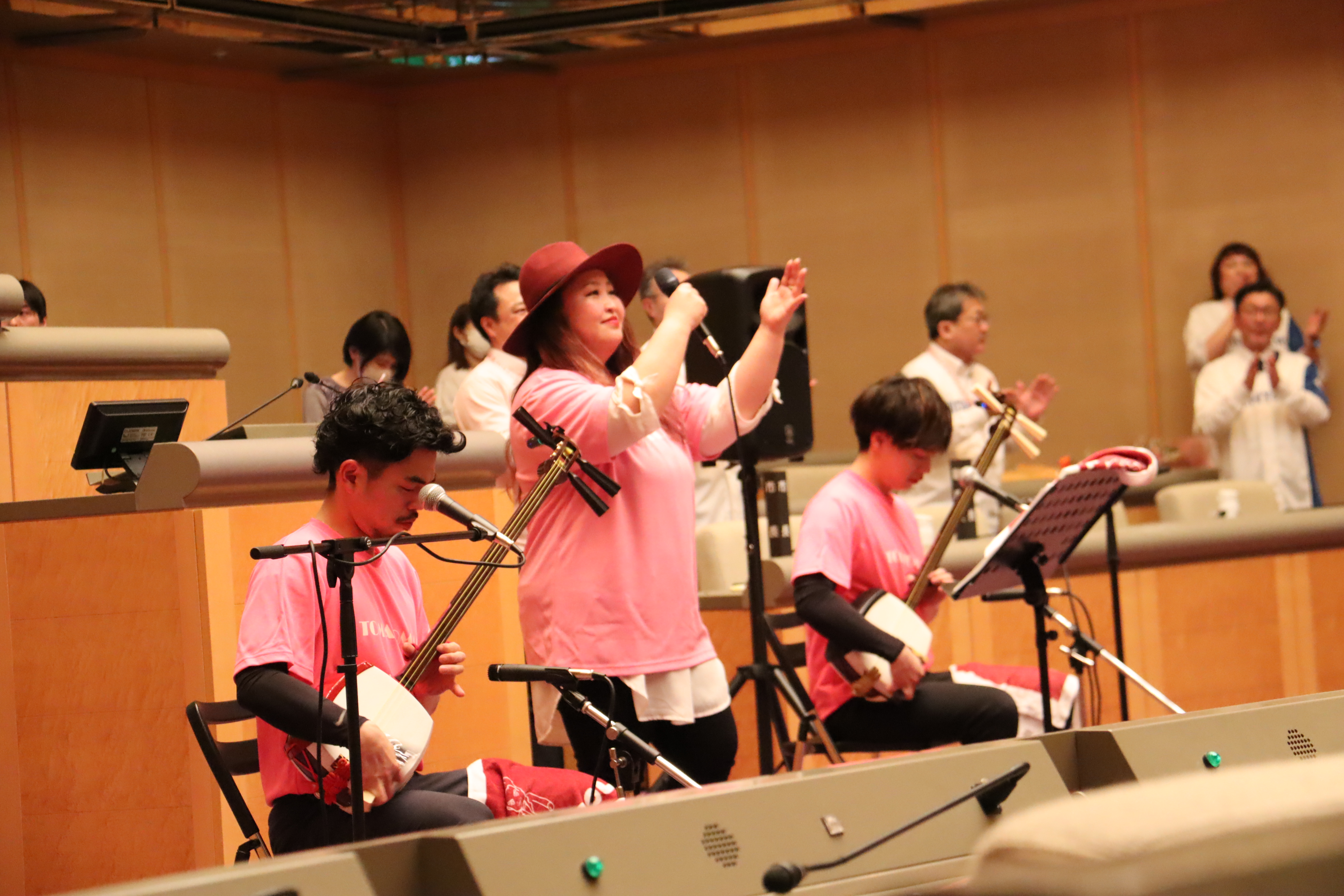 当日は、ご本人のオリジナル曲をはじめ、カバー曲を熱唱していただき、門田しほりさんの透き通るような歌声が議場を包み込み、ご来場の皆さまから盛大な拍手と賞賛の声をいただきました。