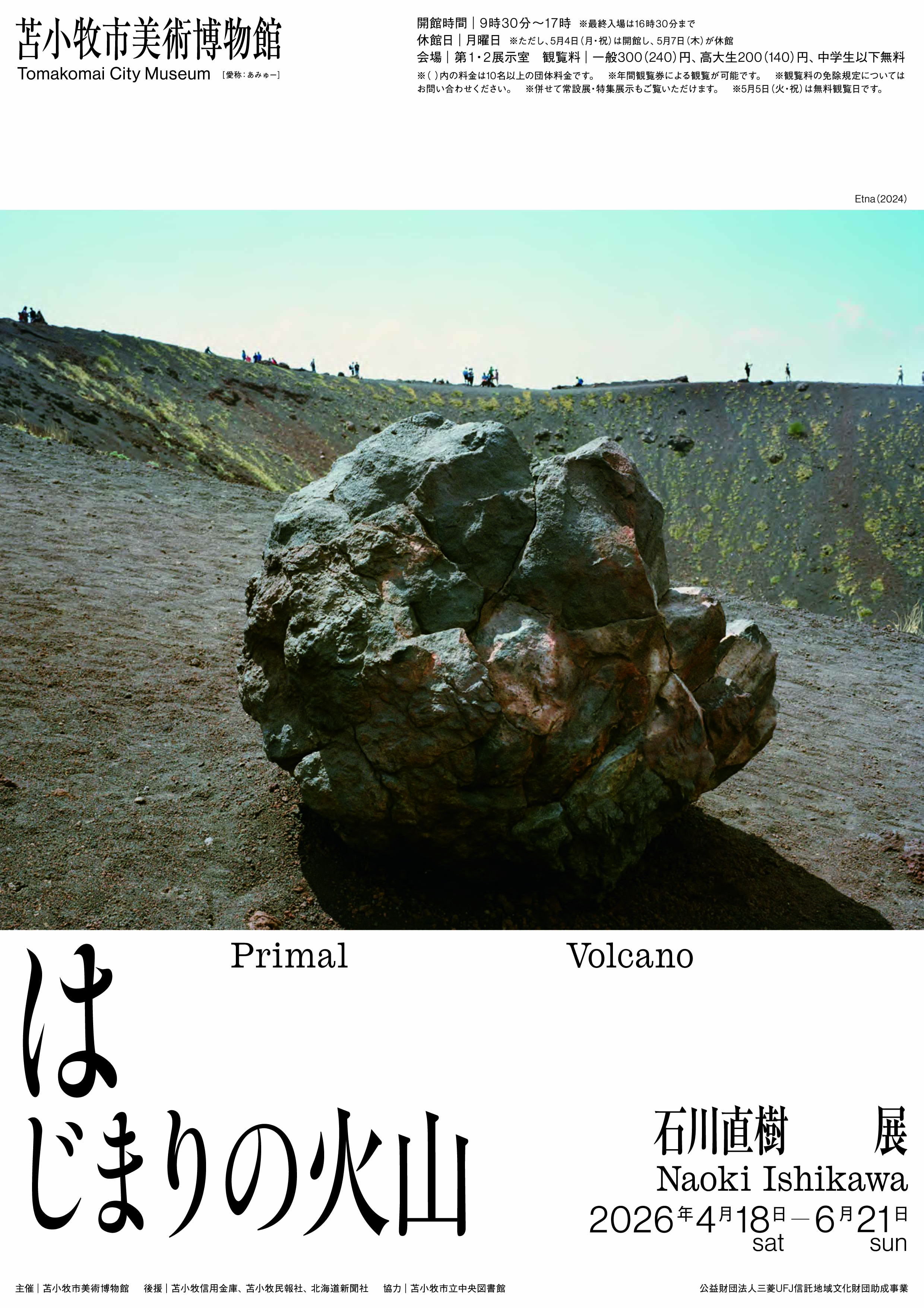 本シリーズで題材とされたエトナ山やエオリア諸島の火山島は、世界的に稀有な活火山として、火山学の揺籃の地とも呼ばれ、学術的に重要な場所として世界遺産にも登録されています。日本は火山大国であり、苫小牧市も活火山である樽前山を有していますが、作品では日本の山々とは大きく異なる景色が映し出されています。それらは、観るものを手の届かない地球の深部へ、あるいは生命のはじまりへと誘うかのようです。本展を通じて、地球の営みに対する石川の感性が織りなす世界をご覧いただけたら幸いです。