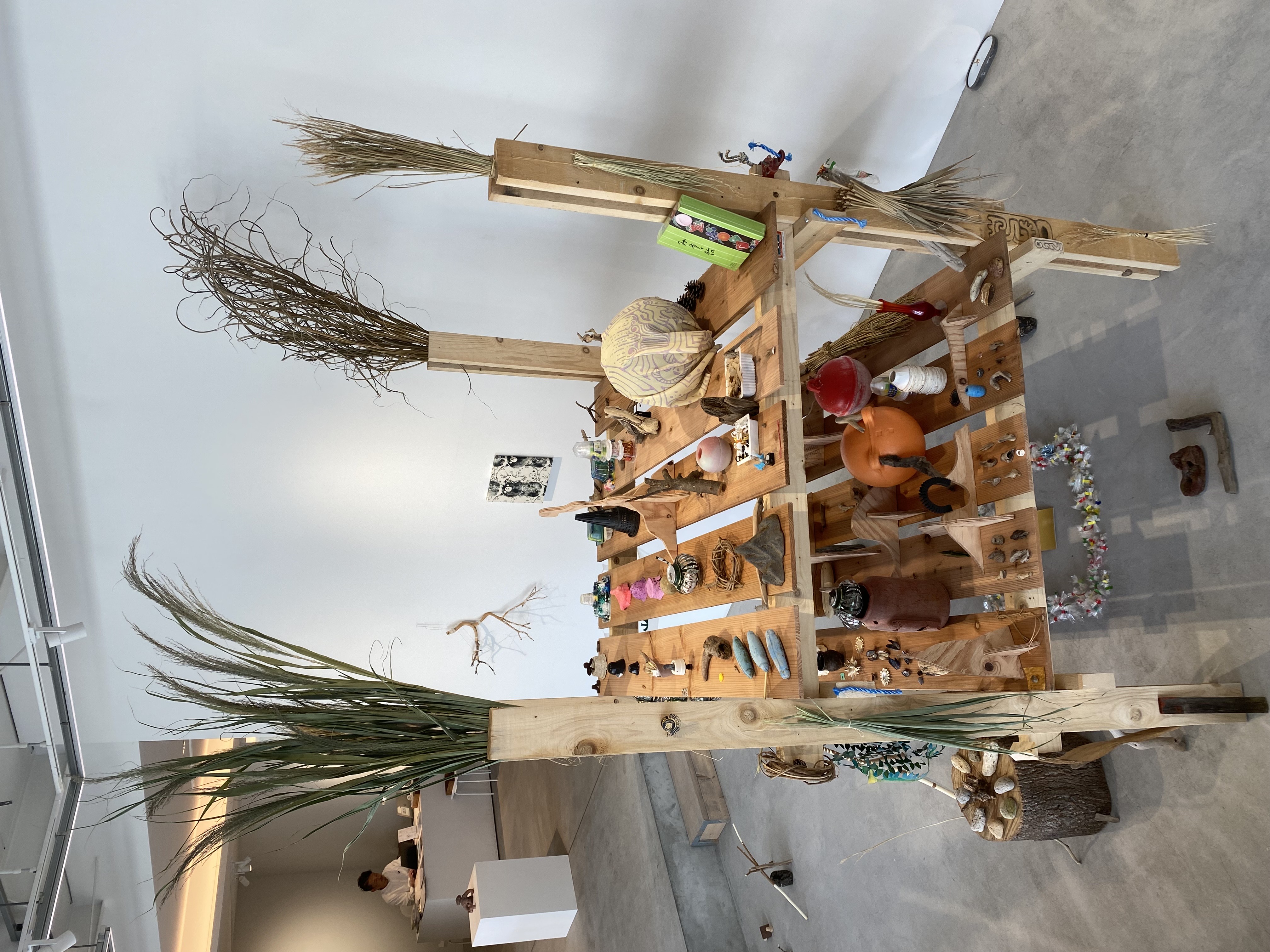 第22回目となる今回は、自然や生命の循環、縄文遺物などから着想を得た作品を手がける森迫暁夫の新作をご覧いただきます。太古の記憶を彷彿とさせる「ヤグラ」を基軸とした本作は、使われなくなった日用品や海岸に辿り着いた漂着物によって構成されます。中庭の回廊を彩る土偶を想起させる立体作品とあいまって、会場は祝祭的なエネルギーに満たされることでしょう。作者に見出されたオブジェないし森迫の言葉を借りるならば現代社会において「ゴミ」として位置づけられる不用品が、作家の想像力によって新たな命を宿すとき、私たちは各々に潜在する根源的な「縄文の視点」に気づかされるかもしれません。森迫の独創的な作品世界を、この機会にぜひお楽しみください。