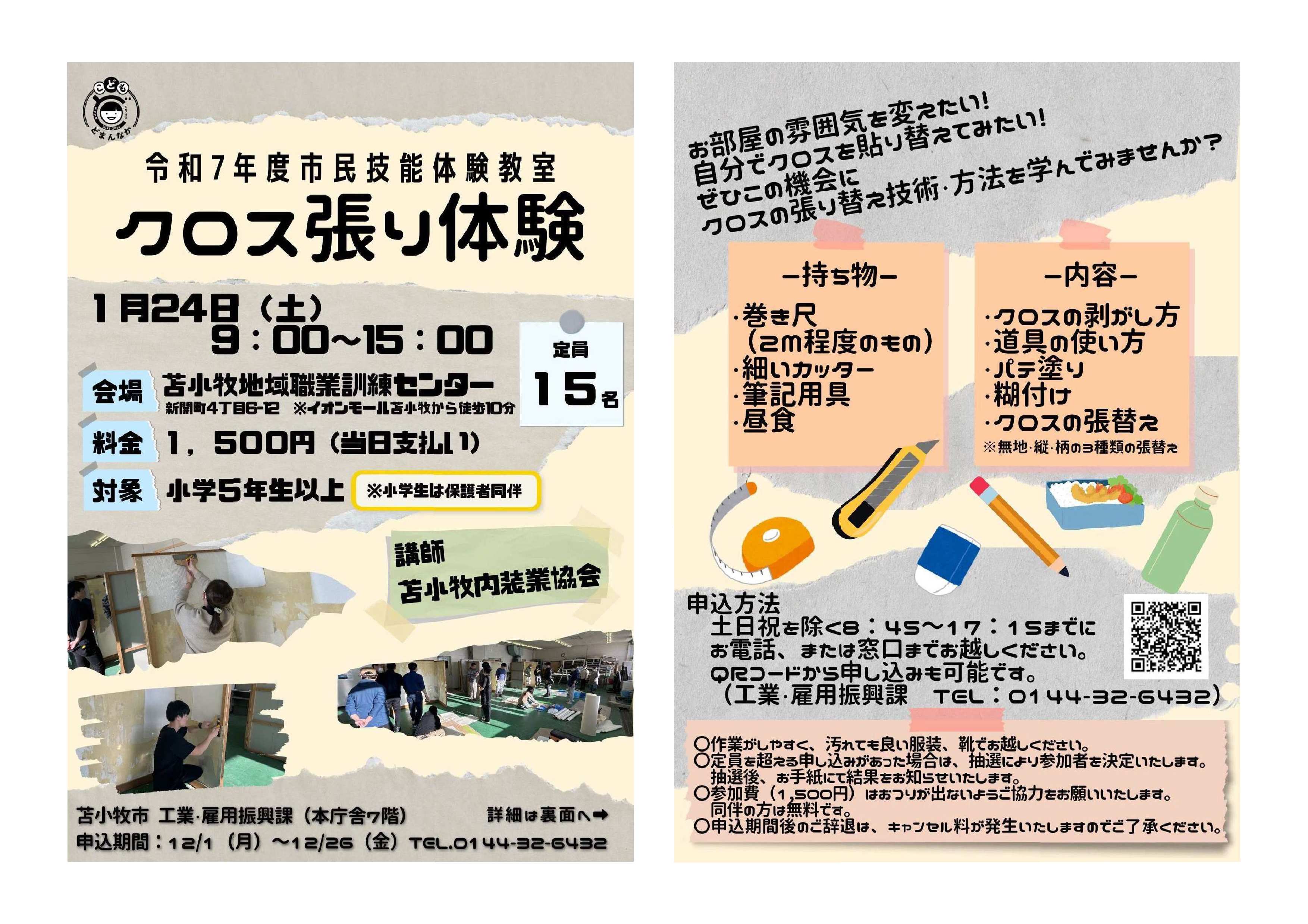 令和7年度市民技能体験教室「クロス張り体験」の開催について