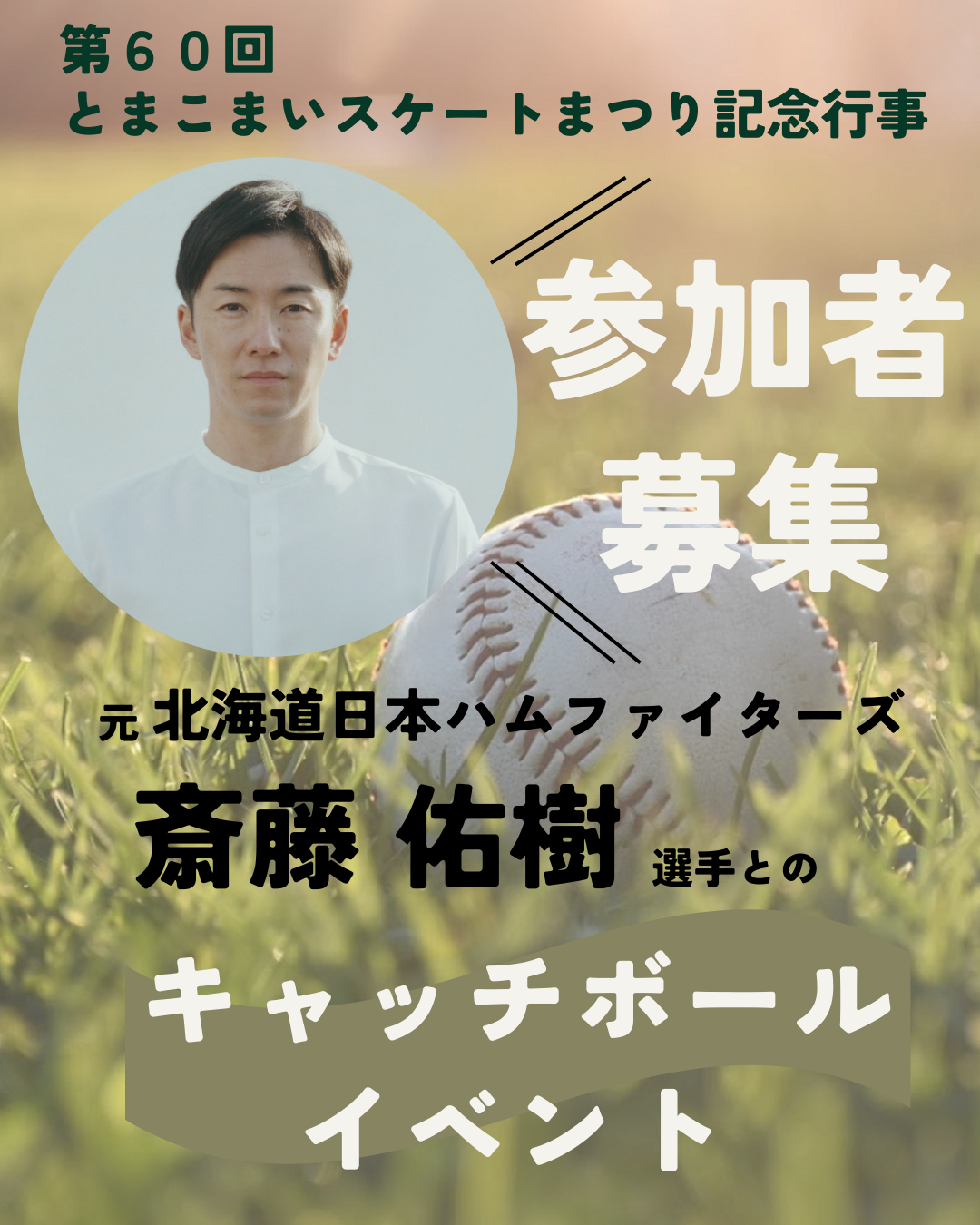 ・元北海道日本ハムファイターズ斎藤佑樹選手とのキャッチボール(1人3回程度)・サイン入りボールプレゼント