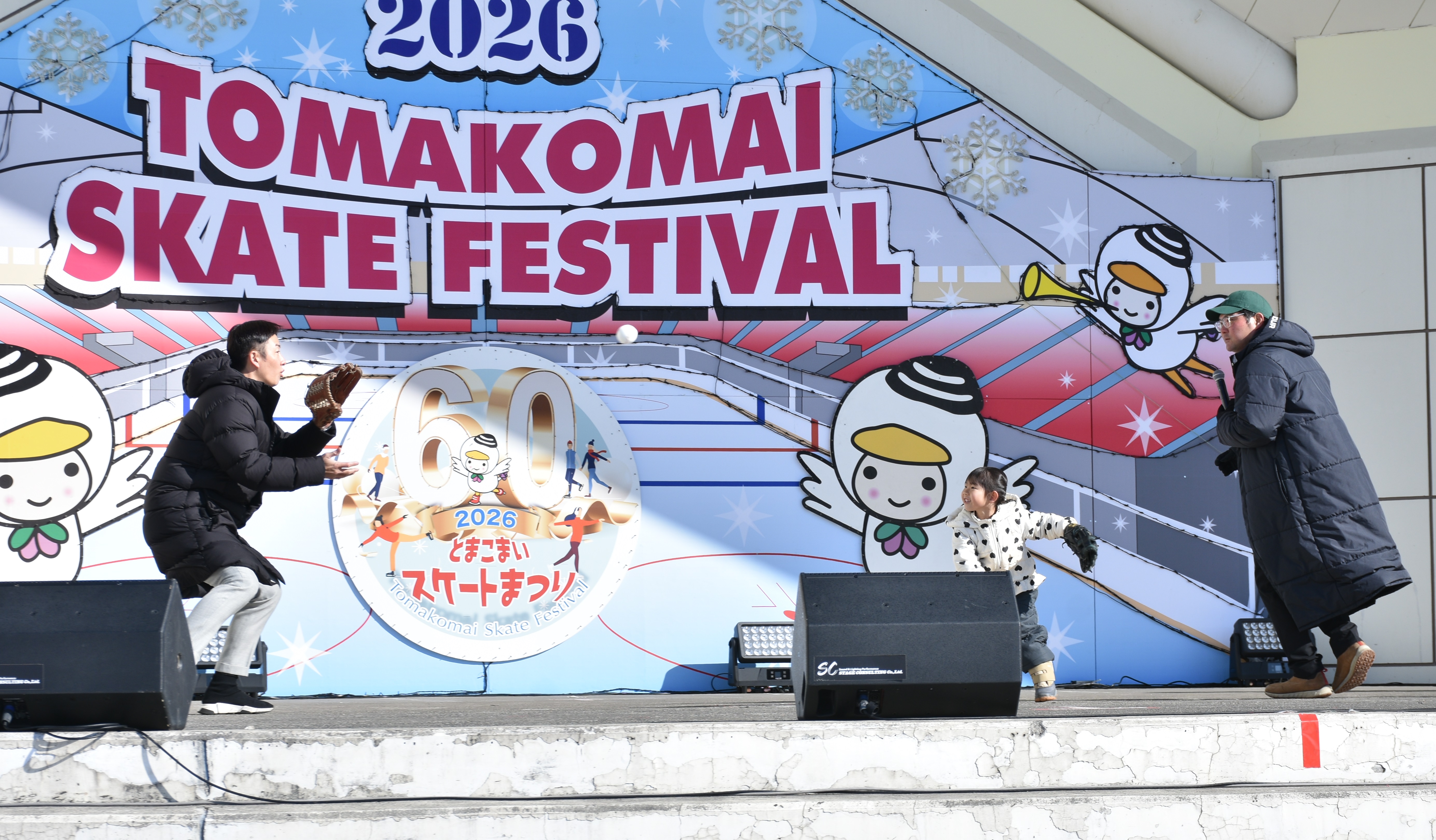 ・斎藤佑樹様と、抽選で選ばれた市民3名とのキャッチボール