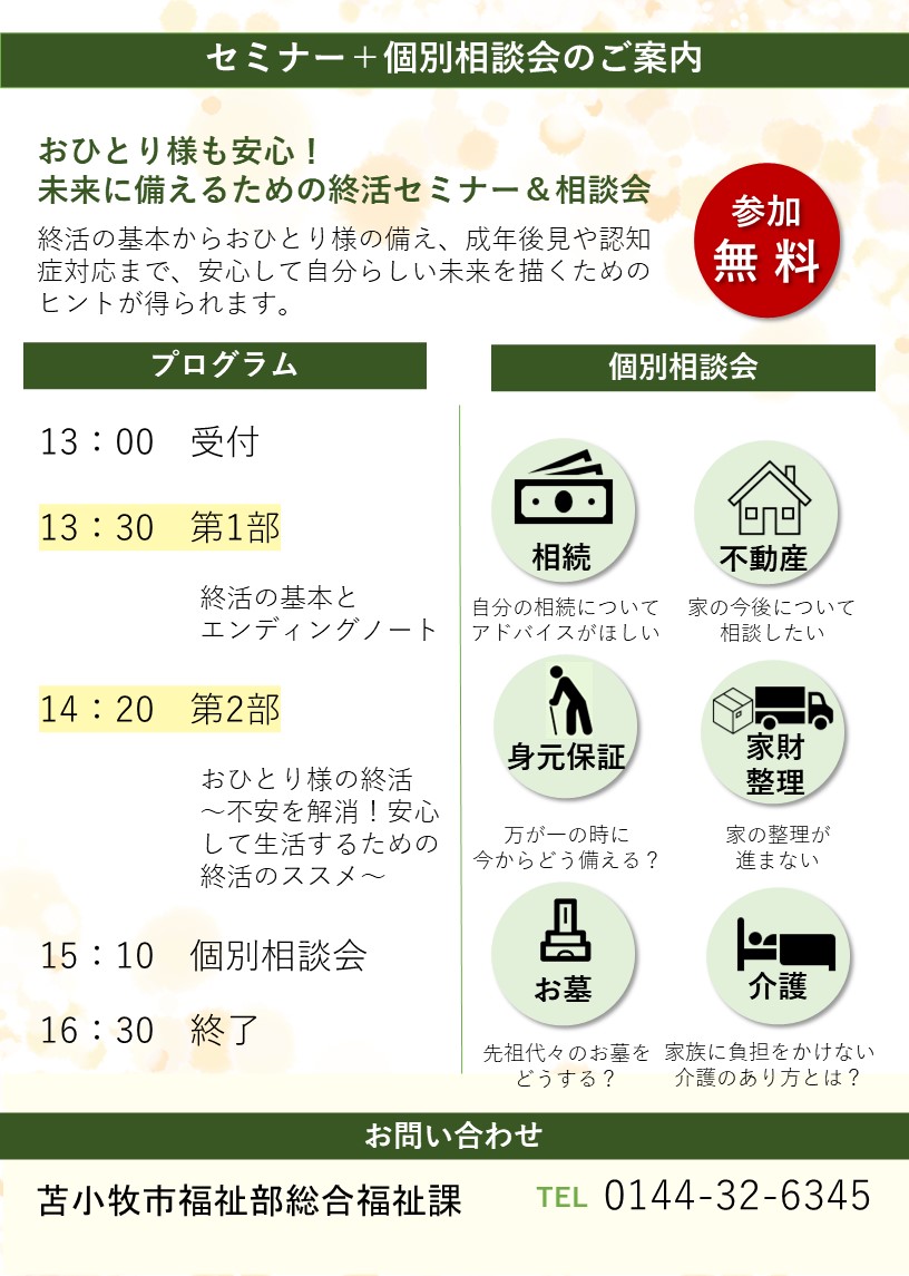 「これから終活を始めたい方」「一人でも未来に備えたい方」ぜひこの機会にセミナーに参加してみませんか?