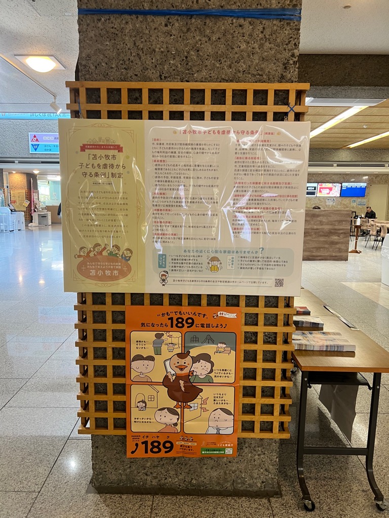 令和3年1月1日から施行した苫小牧市子どもを虐待から守る条例、児童虐待防止推進に係るポスターを併せて掲示しました。