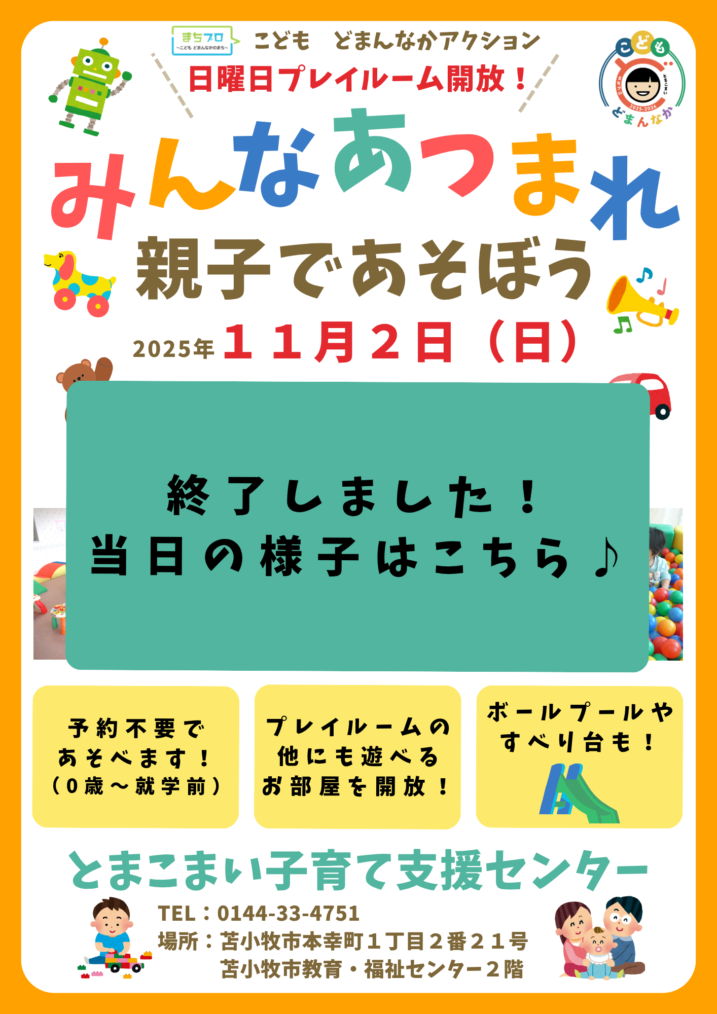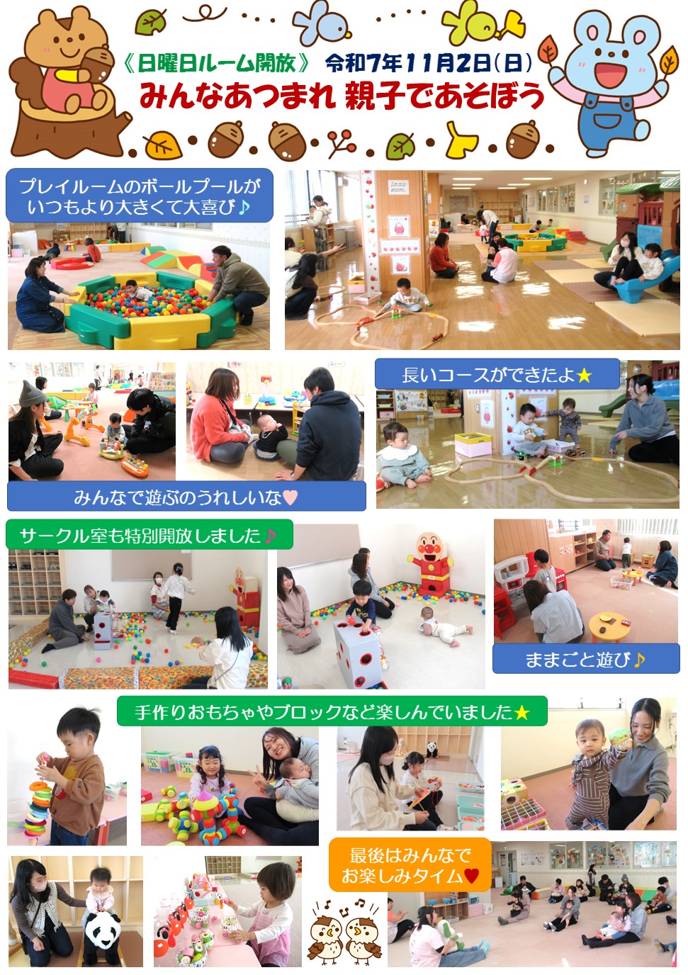 日曜日プレイルーム開放「みんな あつまれ 親子であそぼう」