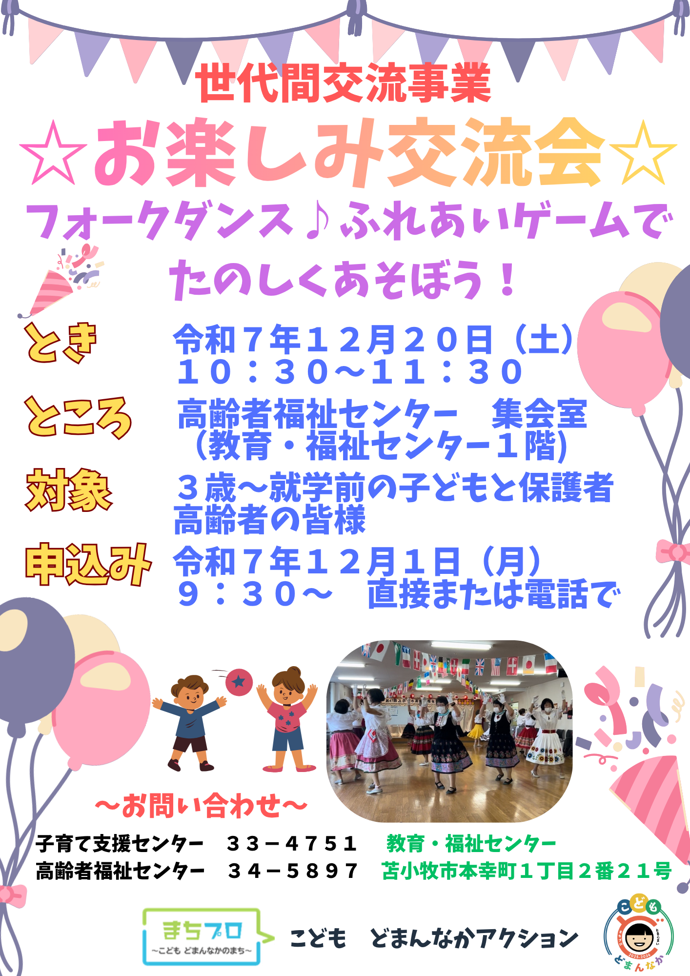 3歳~就学前のこどもと保護者の皆さん、高齢者の方と楽しく交流しませんか!