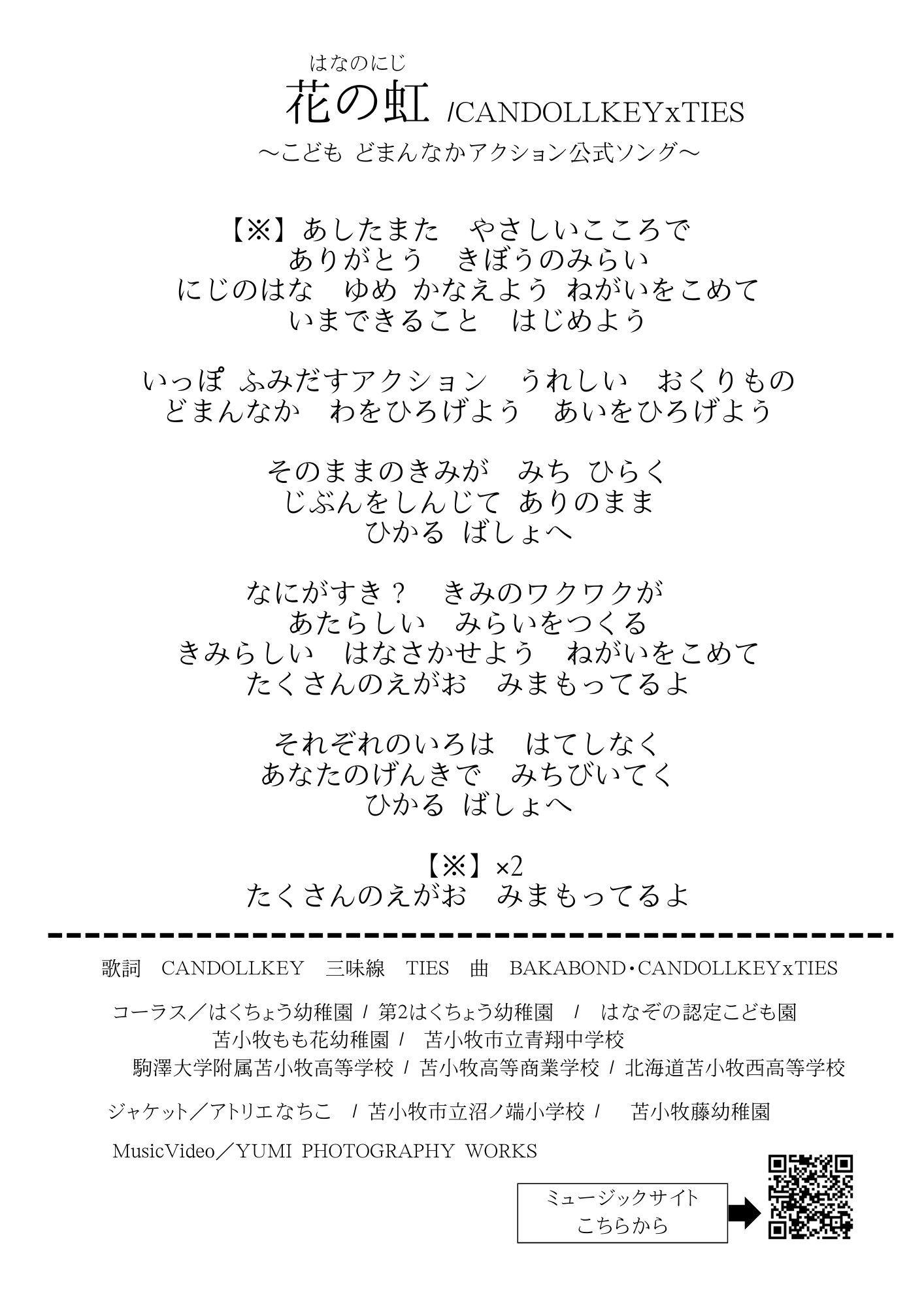 こども どまんなかアクション公式ソング「花の虹」をリリースしました。皆さんぜひお聞きください。