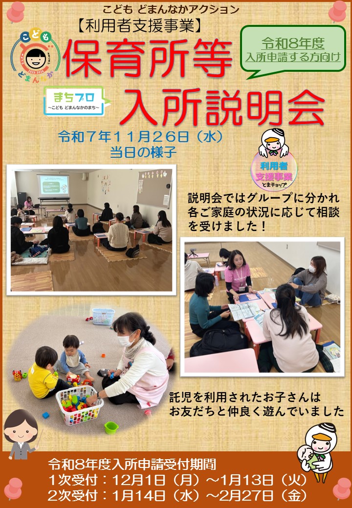 11月26日(水) みその保育園子育てルームへ電話 (☎09015241813) ○みその保育園子育てルームの 詳細はこちら |