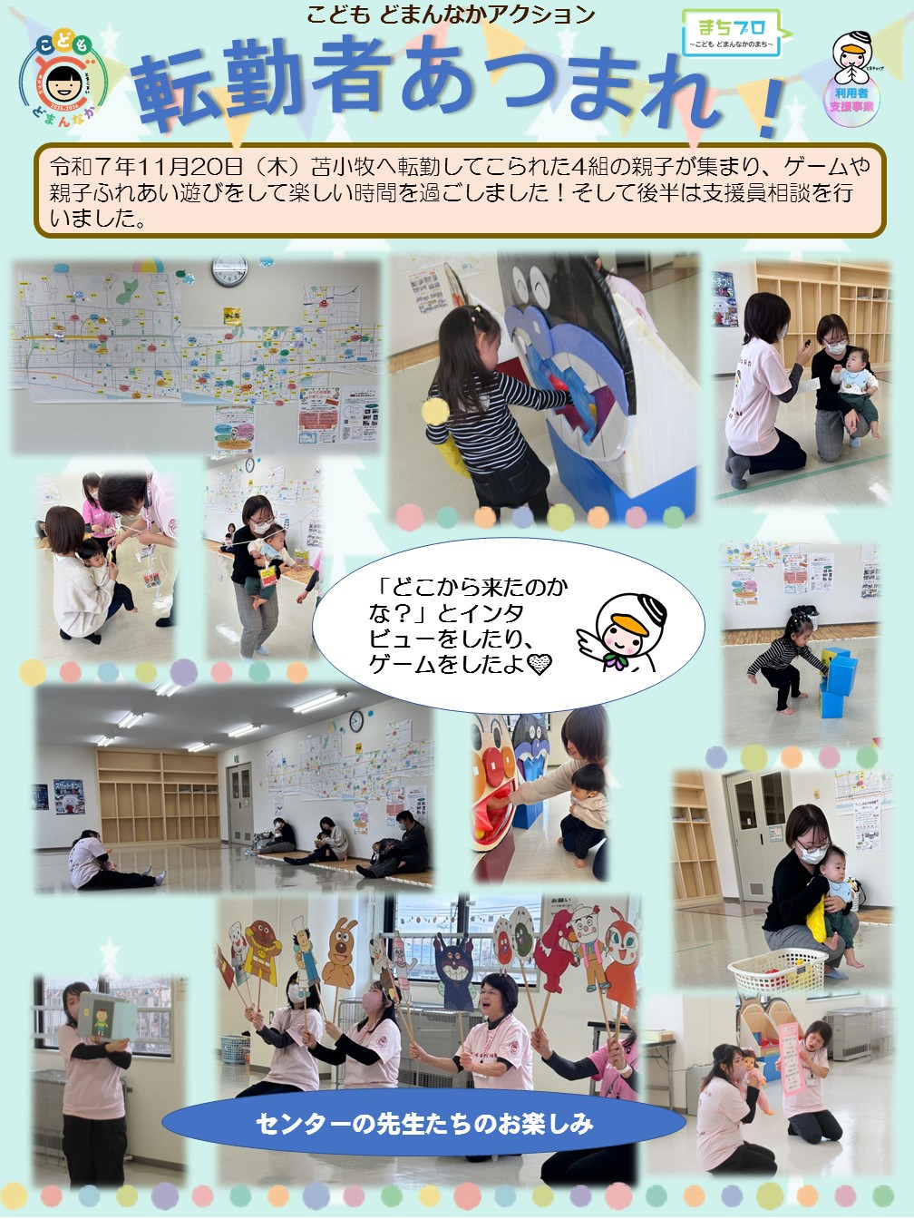 毎月1回 土曜日 【時間】 9時30分~12時 【場所】 子育て支援センター (教育・福祉センター2階) |