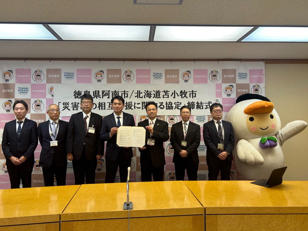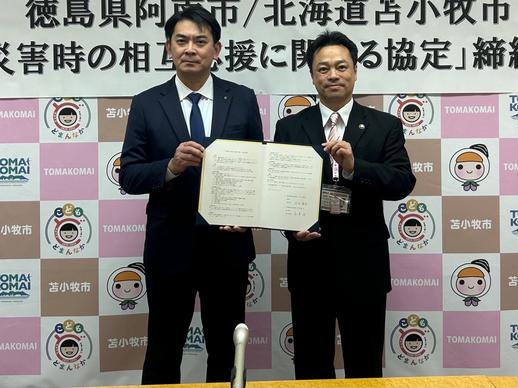 阿南市または苫小牧市の一方において、自然災害等の大規模な災害が発生した場合に、被災者の救出、医療、防疫、施設の応急復旧等に必要な物資や生活必需品等の物資の提供、職員等の派遣、被災者の一時収容施設の提供などの支援活動を、迅速かつ円滑に遂行するための基本的事項を定めたものです。協定締結者