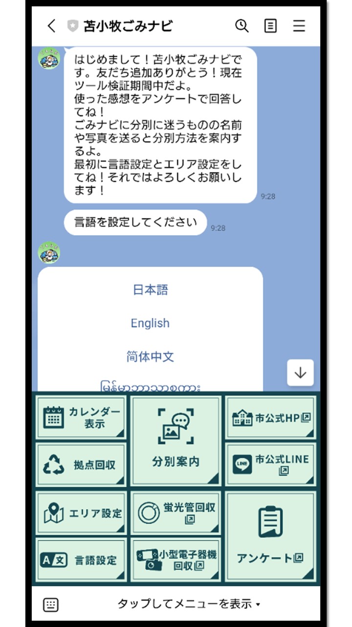 苫小牧市ではより多くの方がごみ分別検索を簡単に行うことができるよう、LINEでの分別検索を導入しました。AIを使用した画像検索機能や多言語対応のテキスト検索により誰でも気軽に調べることができます。利用料は無料です。(通信料はご利用者負担)