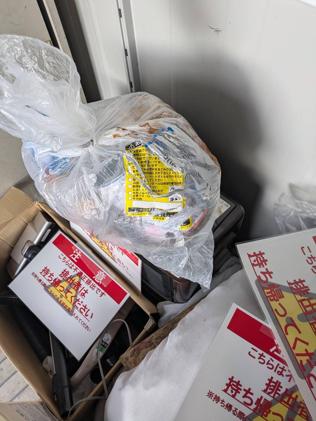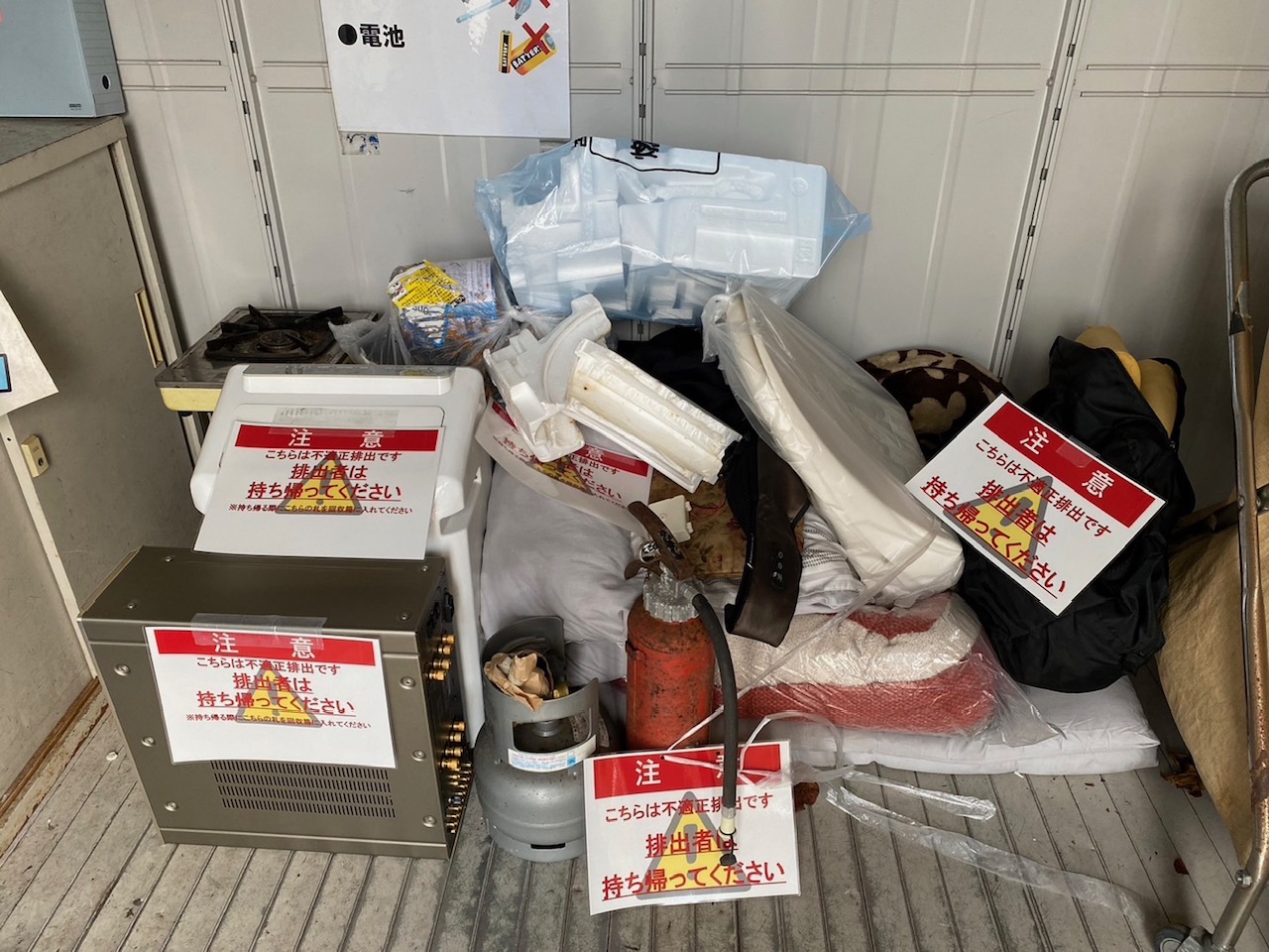 【のぞみコミュニティセンターの拠点回収場所に捨てられた不法投棄の一部】