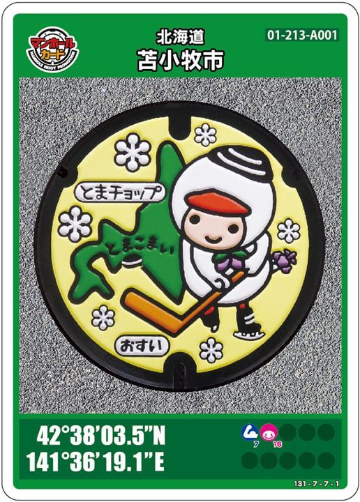 マンホールカードの左下にある数字は座標を表しており、苫小牧市で言うと、