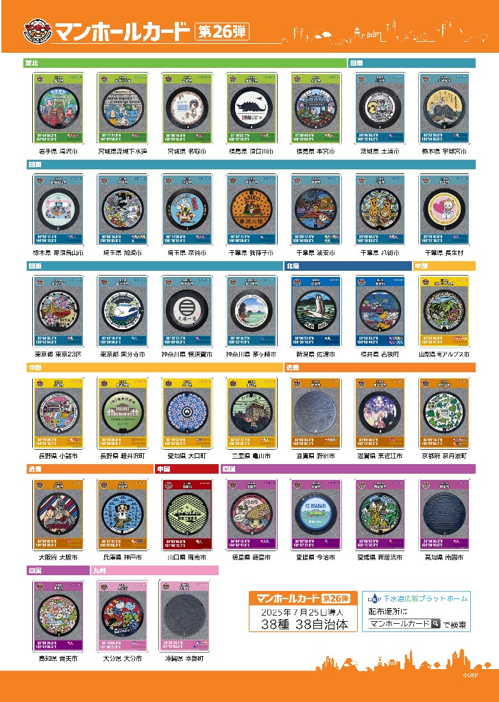 マンホールカードには、実際のマンホール蓋と同じデザインが採用されており、カードの収集を目的に各地を巡ることで旅の楽しみが広がるとともに、普段意識しないインフラへの関心を高めるきっかけにもなりますので、たくさん集めてみてください。