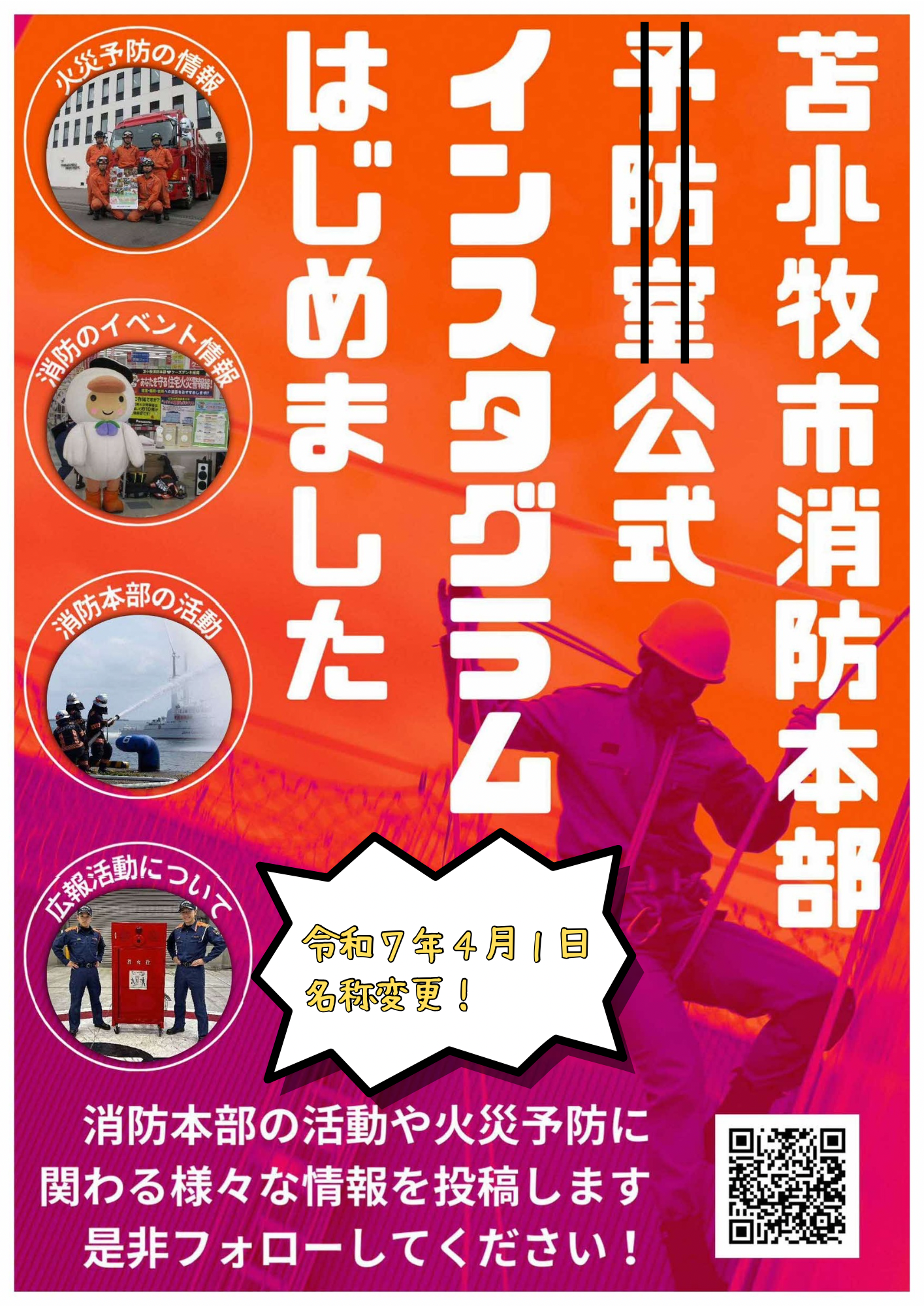 今後は、苫小牧市消防本部公式Instagramにて火災予防に係る情報を発信していきます。