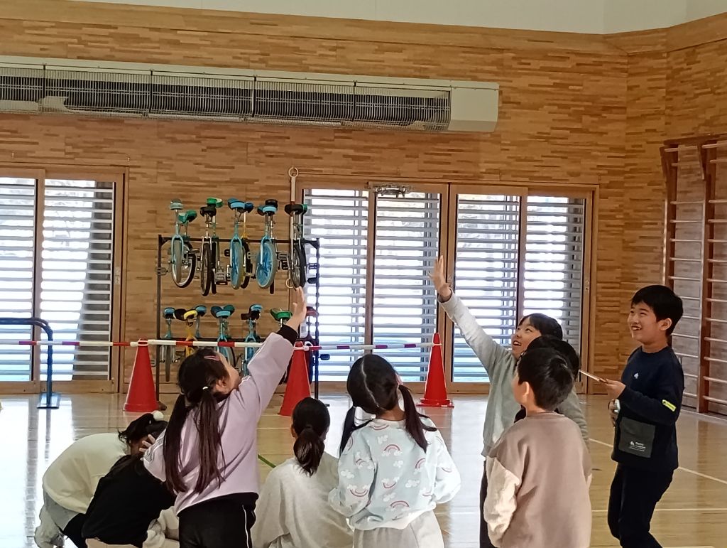 苫小牧市スポーツ推進委員が指導員となり、木の棒を投げて木製のピン(スキットル)を倒し、得点を競う競技であるフィンランド発祥のスポーツ「モルック」を楽しく学びました。