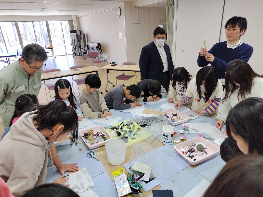 苫小牧市科学センターの職員が指導員となり、身近に生息するチョウの生態や、水を弾く鱗粉について、実験を通して理解した後、紙とマグネットを使ってチョウの工作をしました。