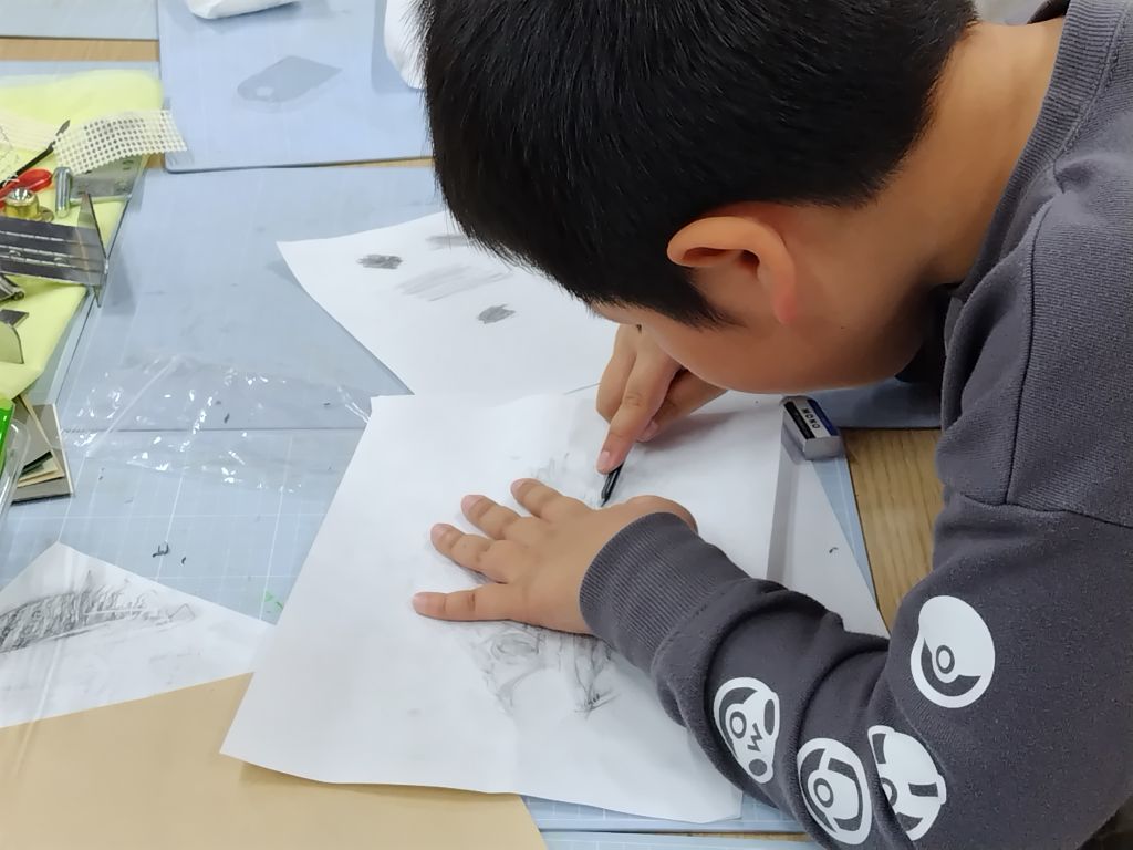 苫小牧市美術博物館の学芸員が講師となり、物の凹凸や質感を鉛筆などでこすりだす絵画技法であるフロッタージュを学びました。
