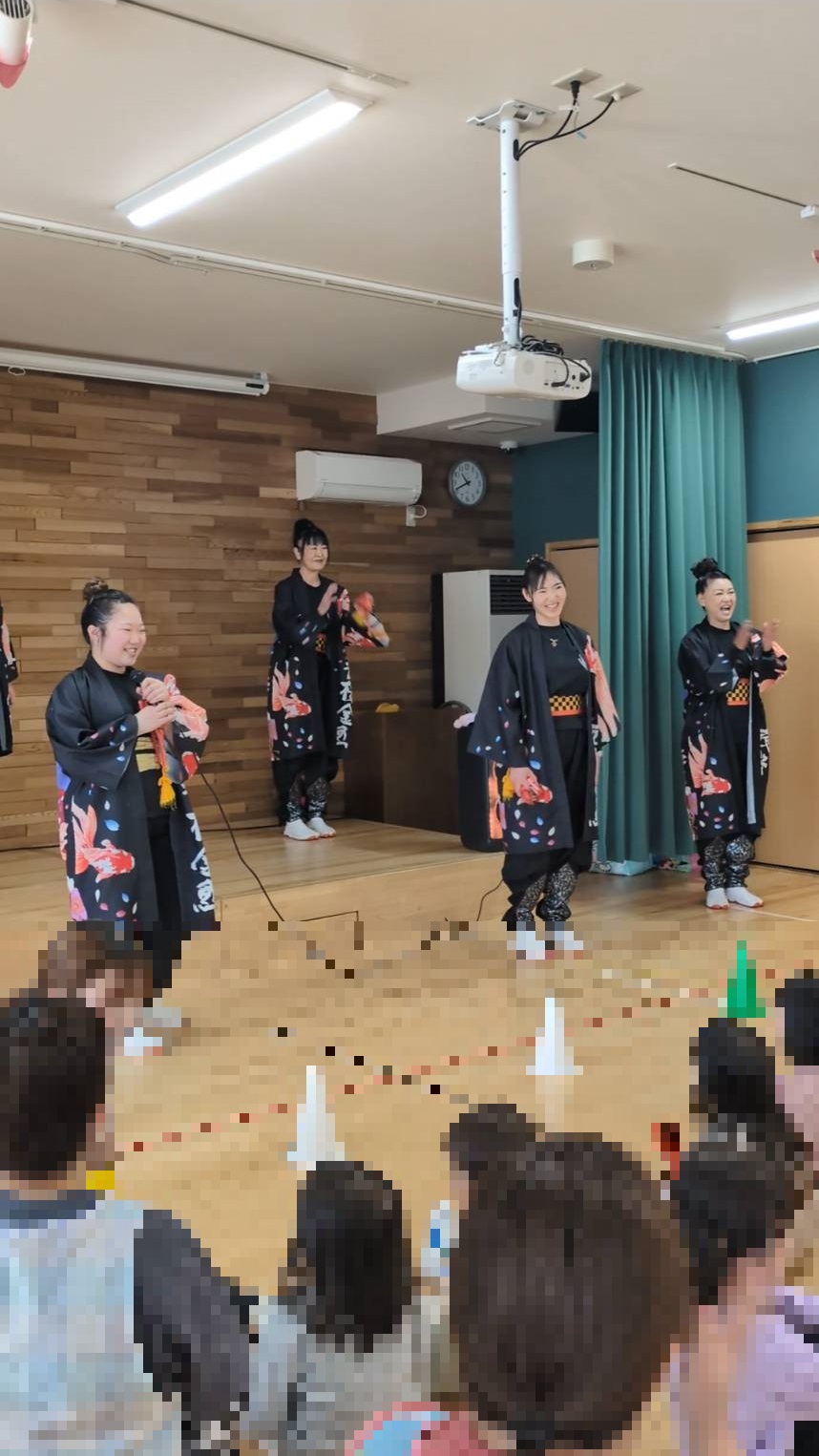 園児85人に『夜桜金魚とまこまい』の皆さんが、YOSAKOIソーランのアウトリーチを行いました。