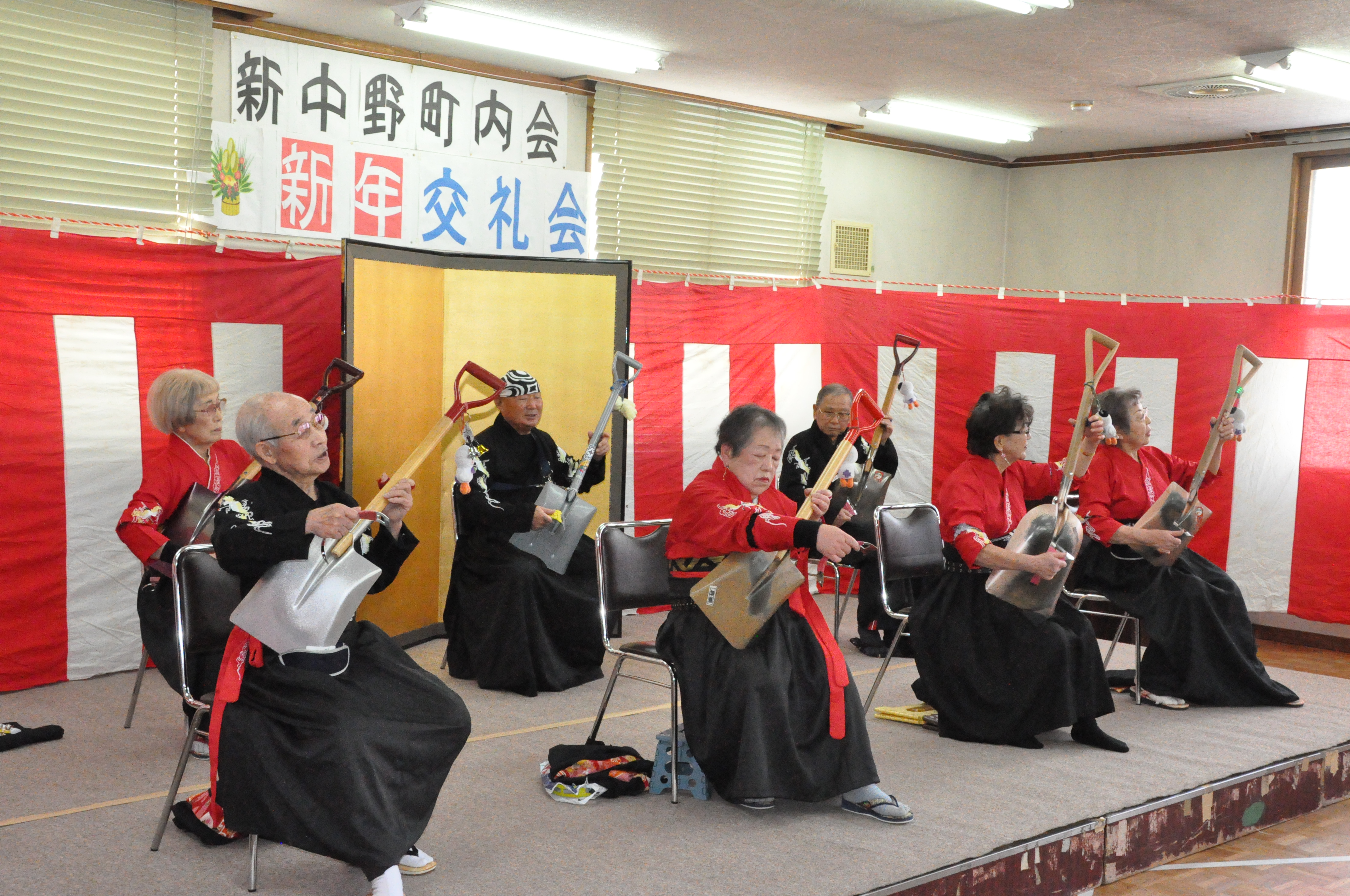 町内会員50人に『ザ・スコップJAPAN「苫仟神」』の皆さんが、スコップ三味線のアウトリーチを行いました。