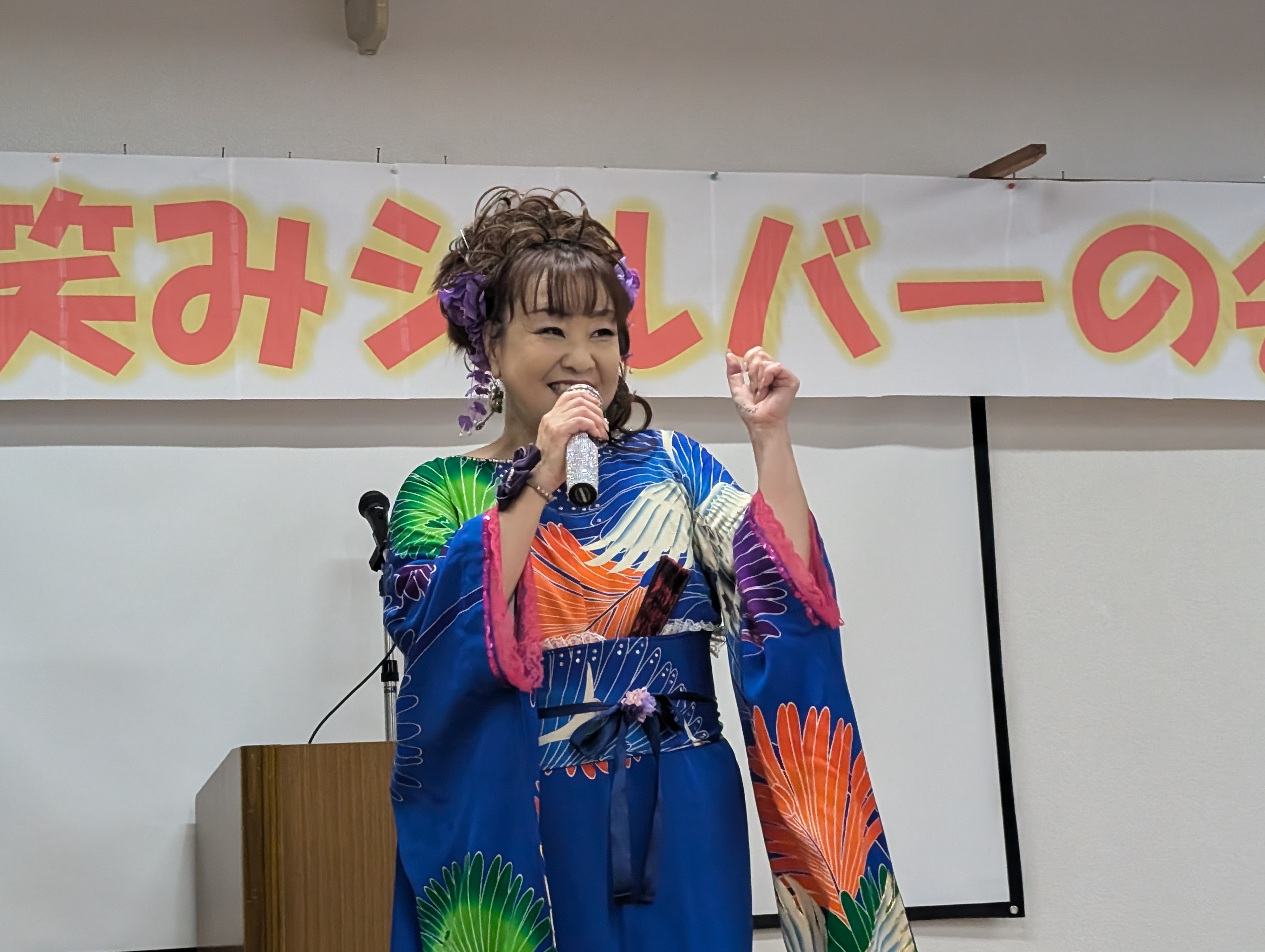 町内会員81人に栗原 ちあきさんが、演歌のアウトリーチを行いました。