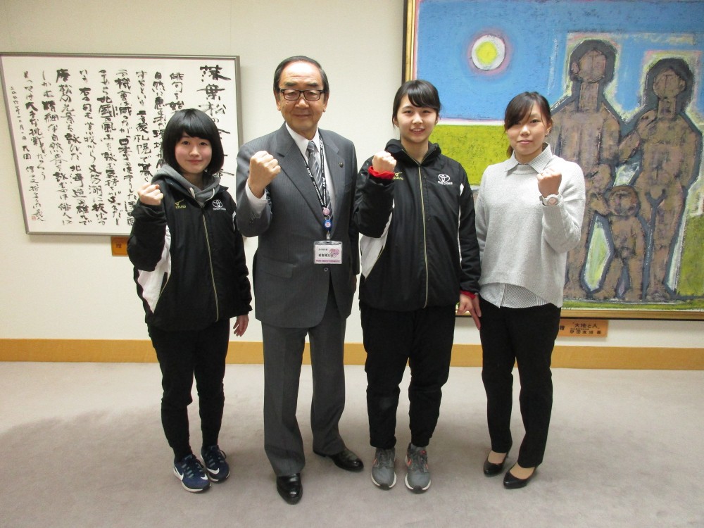 平成29年12月22日(金)から栃木県日光市で開催される「JOCジュニアオリンピックカップ大会 第12回日光杯全日本女子中学・高校生アイスホッケー大会」に出場する「苫小牧選抜」の選手及び関係者の皆さんが、岩倉市長に表敬訪問されました。前回大会では、優勝という結果を残している苫小牧選抜チーム。今大会もチームワークで勝利を掴み取ってきて下さい!期待しています!!