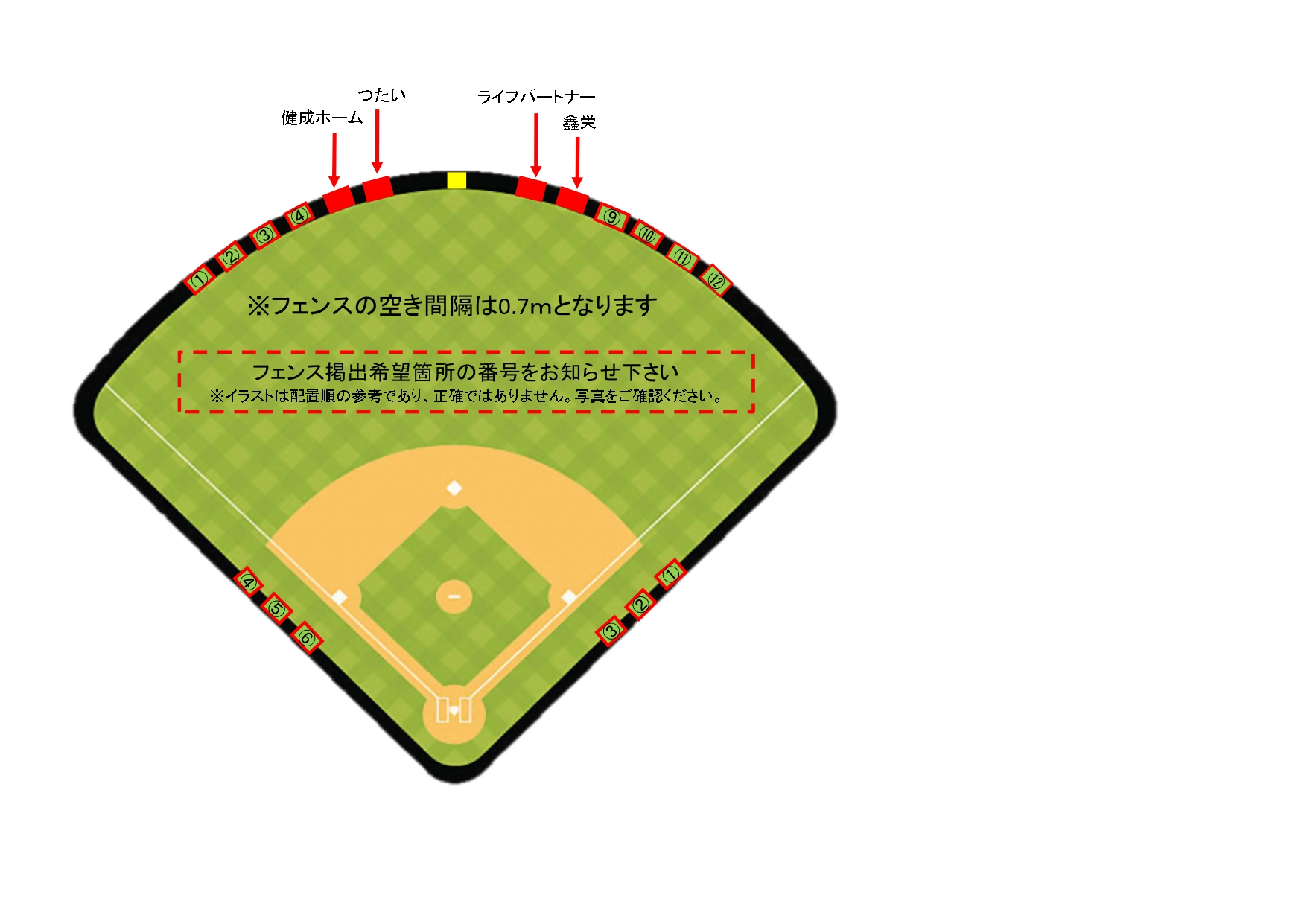 ○掲載箇所 外野フェンス、内野フェンス