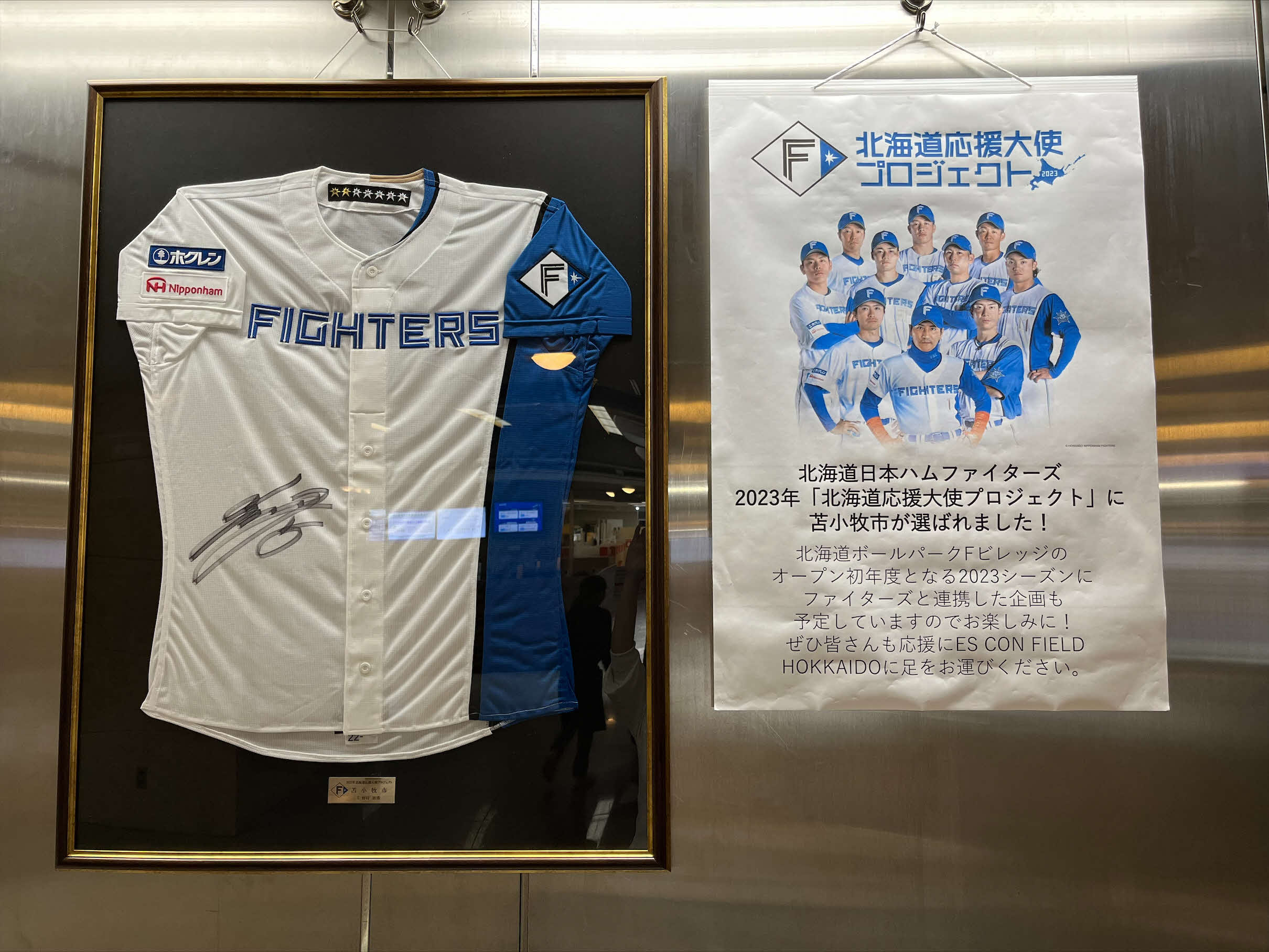 ※苫小牧市役所1Fエレベーター横に掲示した様子(令和5年2月17日(金)~3月31日(金))
