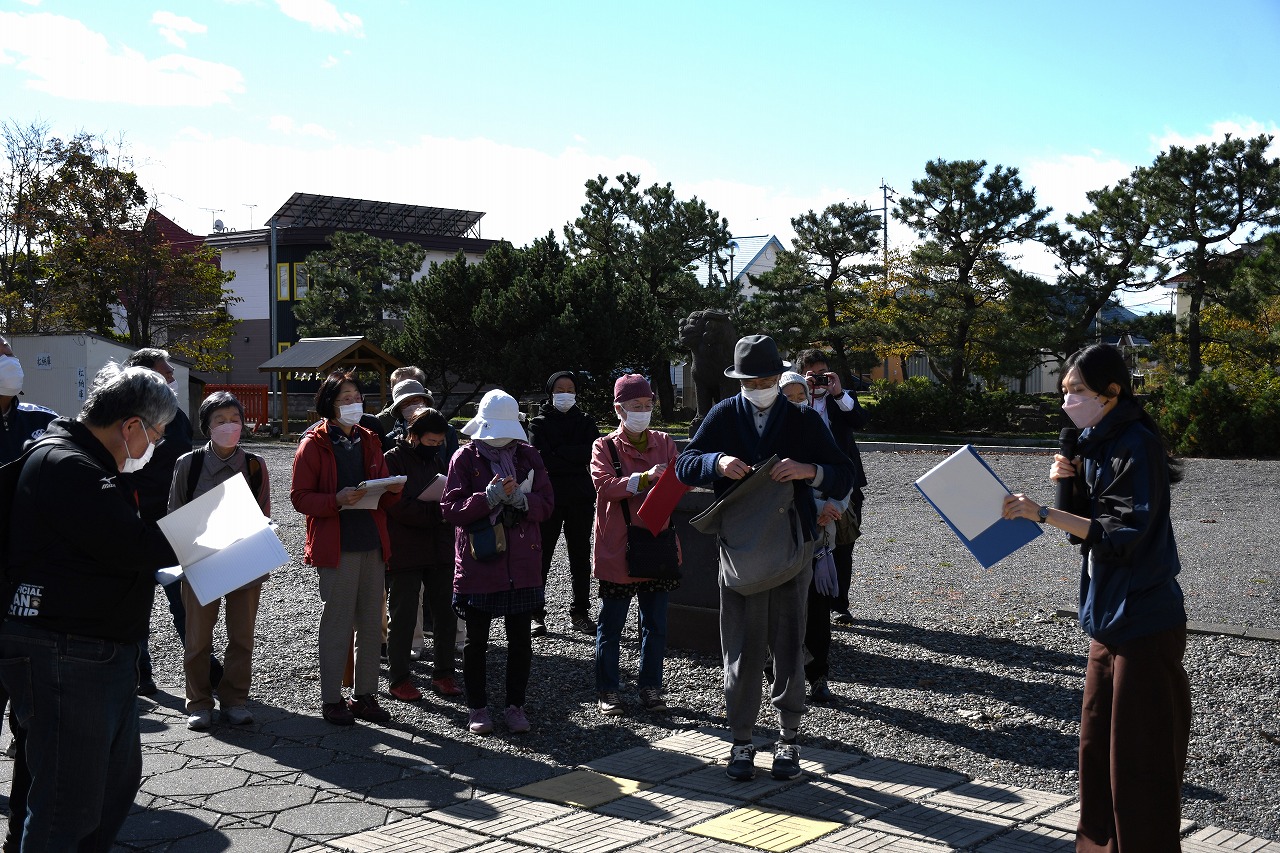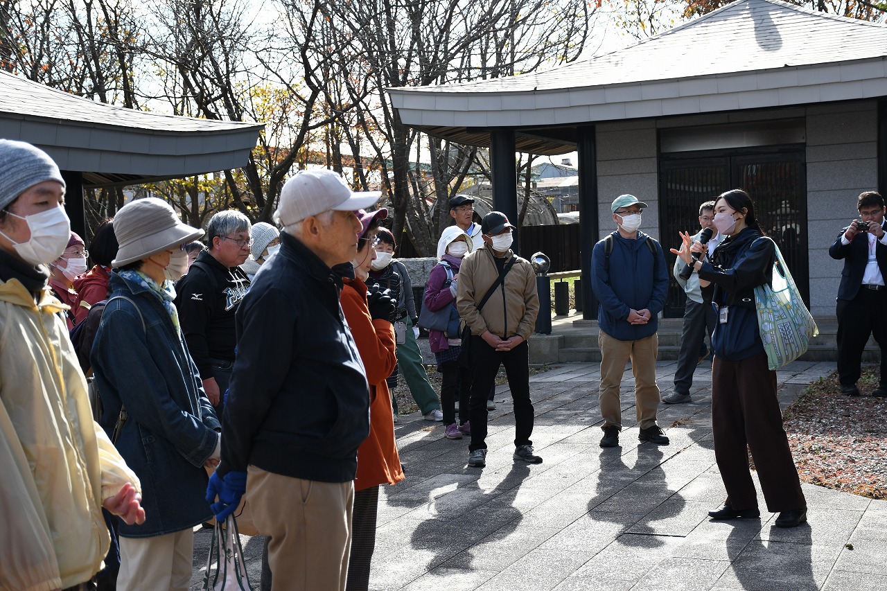10月19日(日)に、美術博物館が主催する歴史見学会「文化財をめぐるバスツアー」が行われました。市内東西にある文化財8カ所をバスで回った本ツアーでは、約40人の参加者たちが学芸員の説明を熱心に聞き入り、学ばれていました。