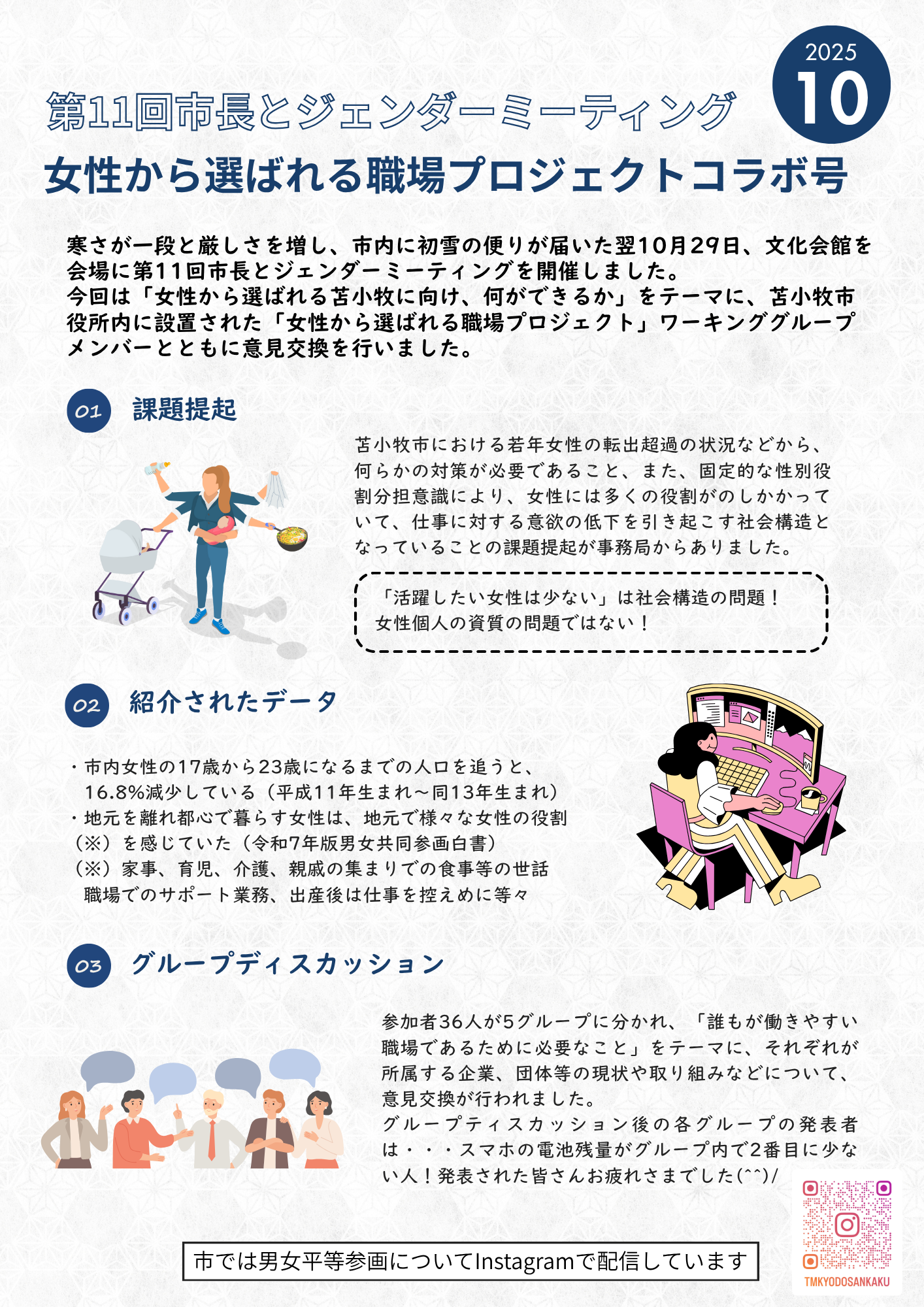 第11回 市長とジェンダーミーティングを開催しました(対話テーマ:女性から選ばれる苫小牧に向け、何ができるか)