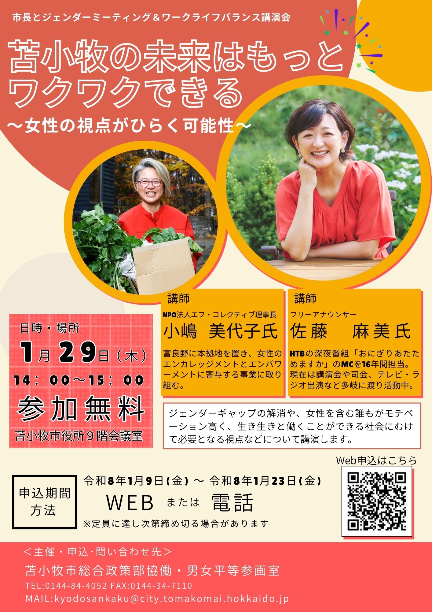 第12回 市長とジェンダーミーティング「苫小牧の未来はもっとワクワクできる」講演会を開催します