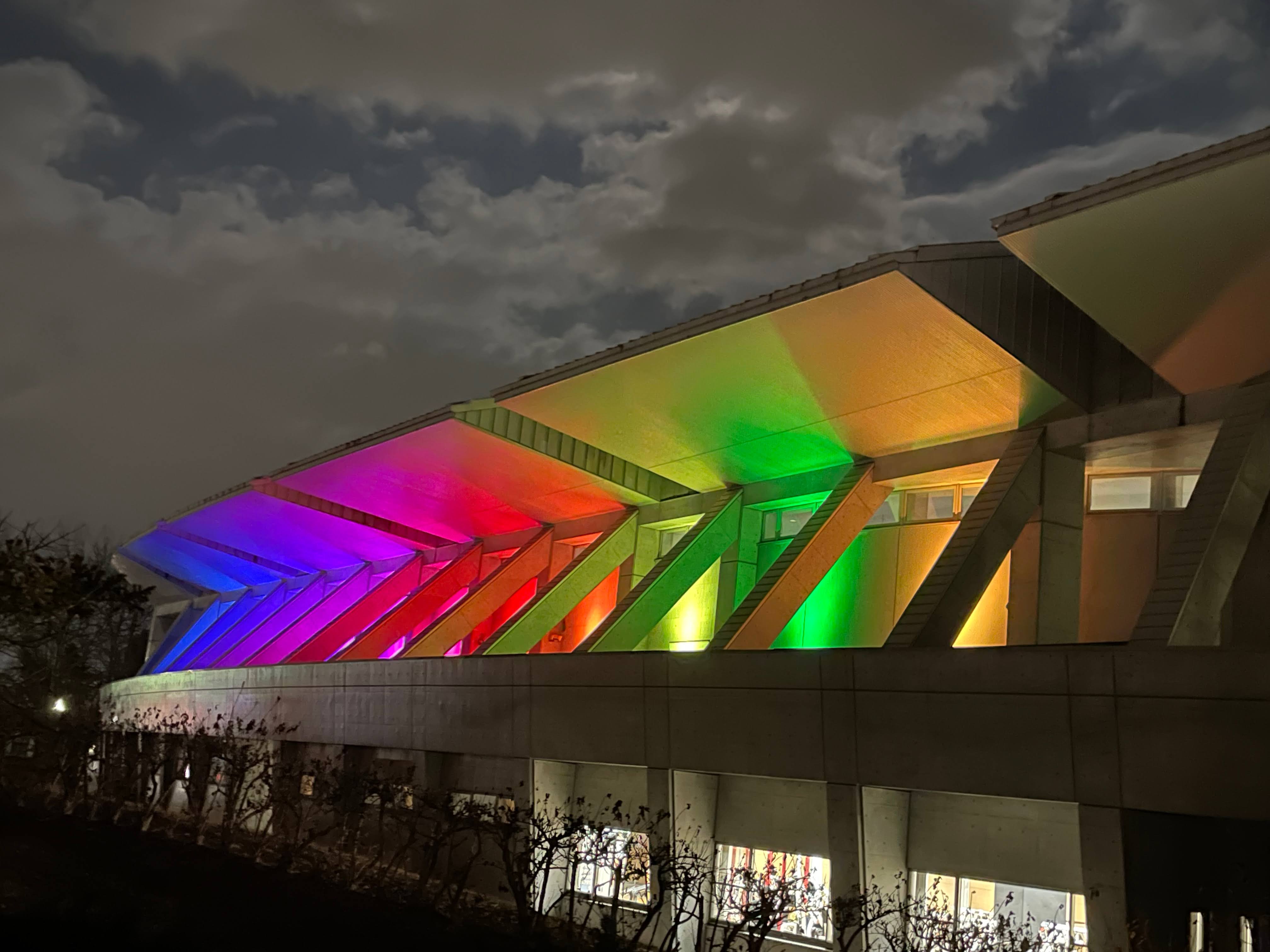 パネル展開催期間に合わせ、nepiaアイスアリーナがレインボーカラーにライトアップされます。▼ライトアップの様子