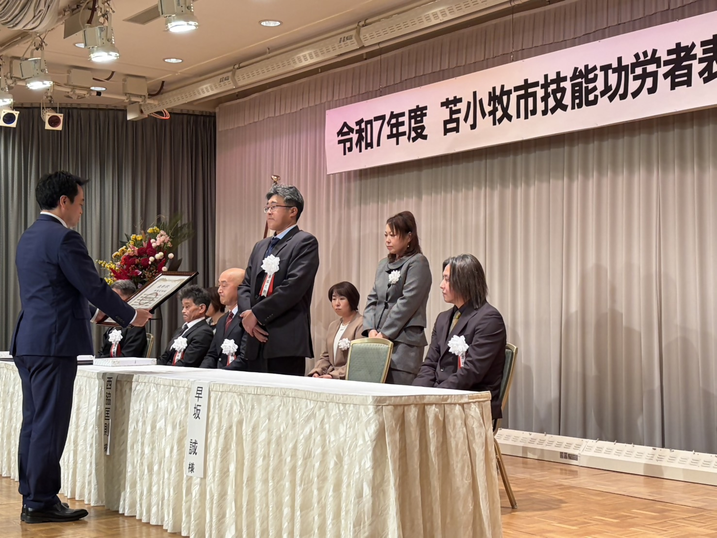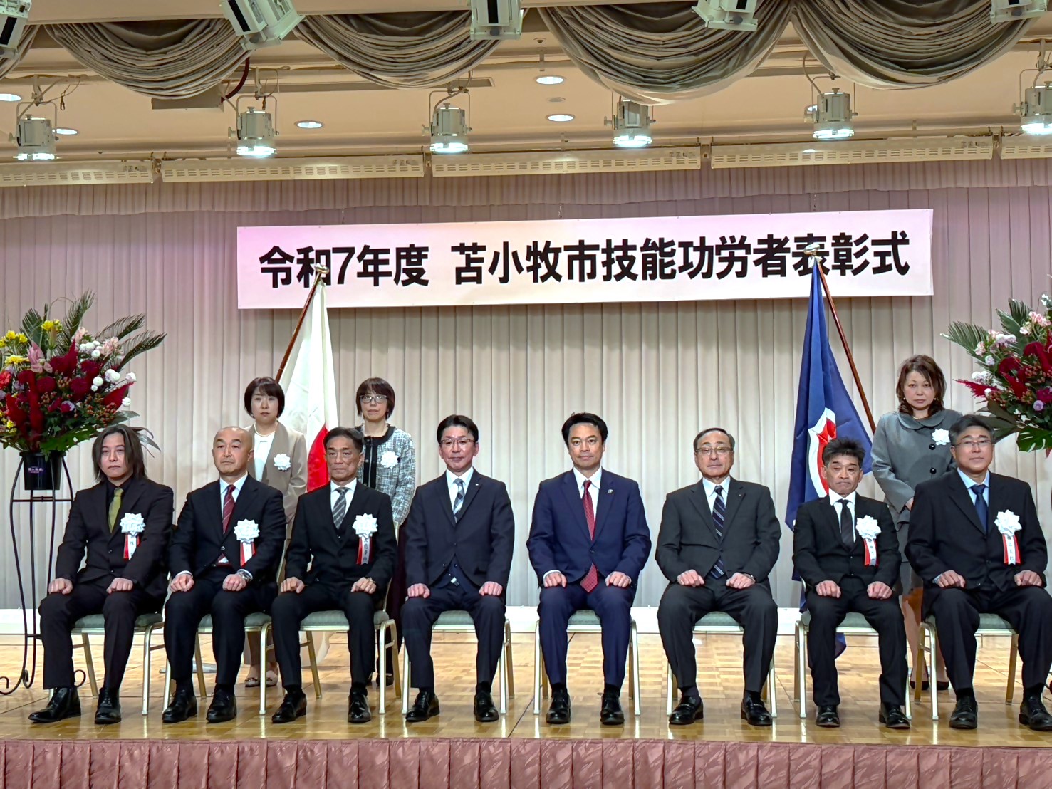令和7年度苫小牧市技能功労者表彰式が行われ、各業界で技能レベルの向上や後進の育成に長年ご尽力された功績をたたえ、表彰させていただきました。受賞された皆さまに心より敬意を表するとともに、ものづくり産業の発展のために引き続きお力添えをお願い申し上げます。