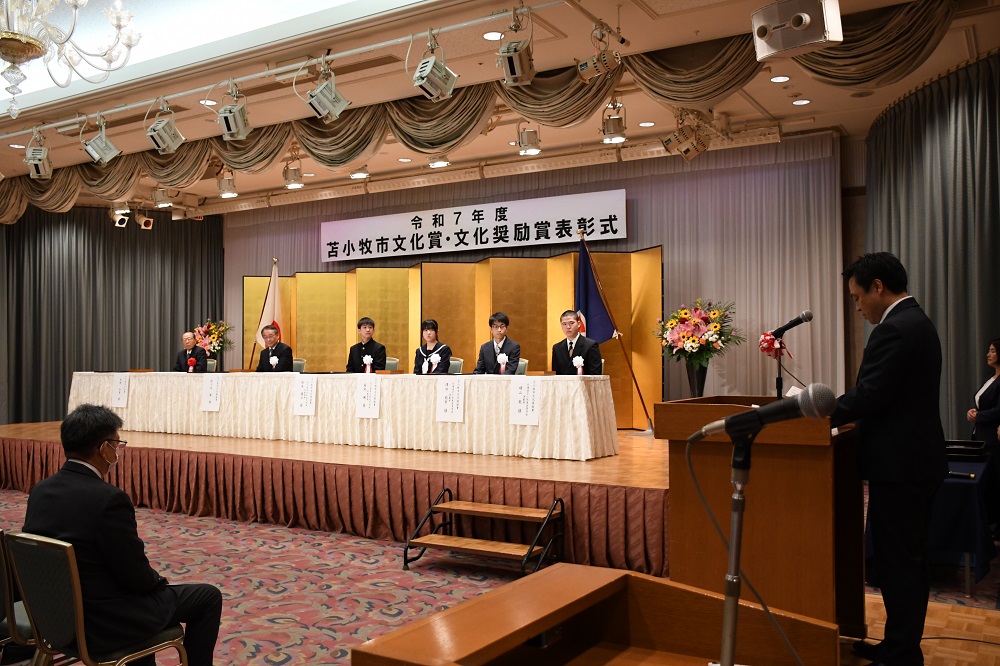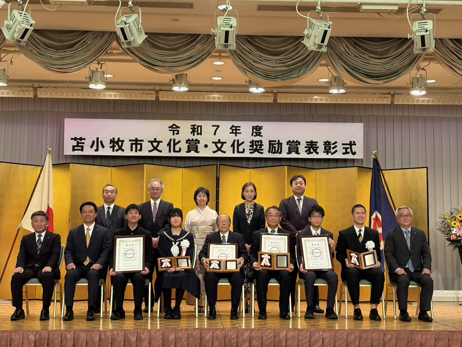 令和7年度苫小牧市文化賞・文化奨励賞表彰式でご挨拶をさせていただきました。長きにわたり本市の文化活動の発展向上に貢献されました皆さまに対し、心より敬意と祝意を申し上げます。今後も文化芸術のまちとして、それぞれの分野でさらなるご活躍を期待しております。