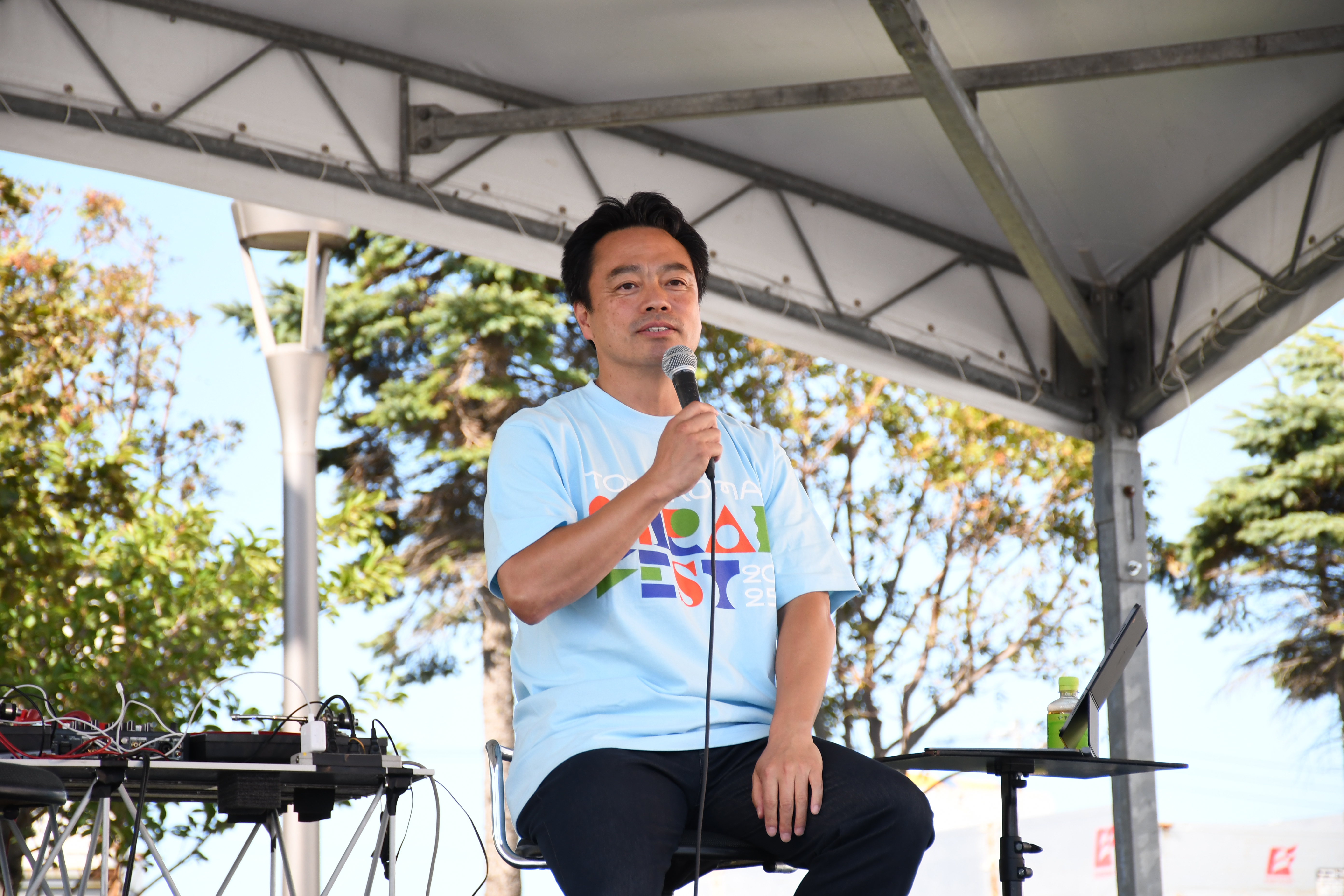 「TOMAKOMAI GX ECHOES Music FES」で、SUGIZOさん、TOMASEIホールディングス渡辺代表とともにトークセッションに参加しました。苫小牧市のGXの展望やイベントに参加した若い方々へ期待することなどをお話させていただきました。