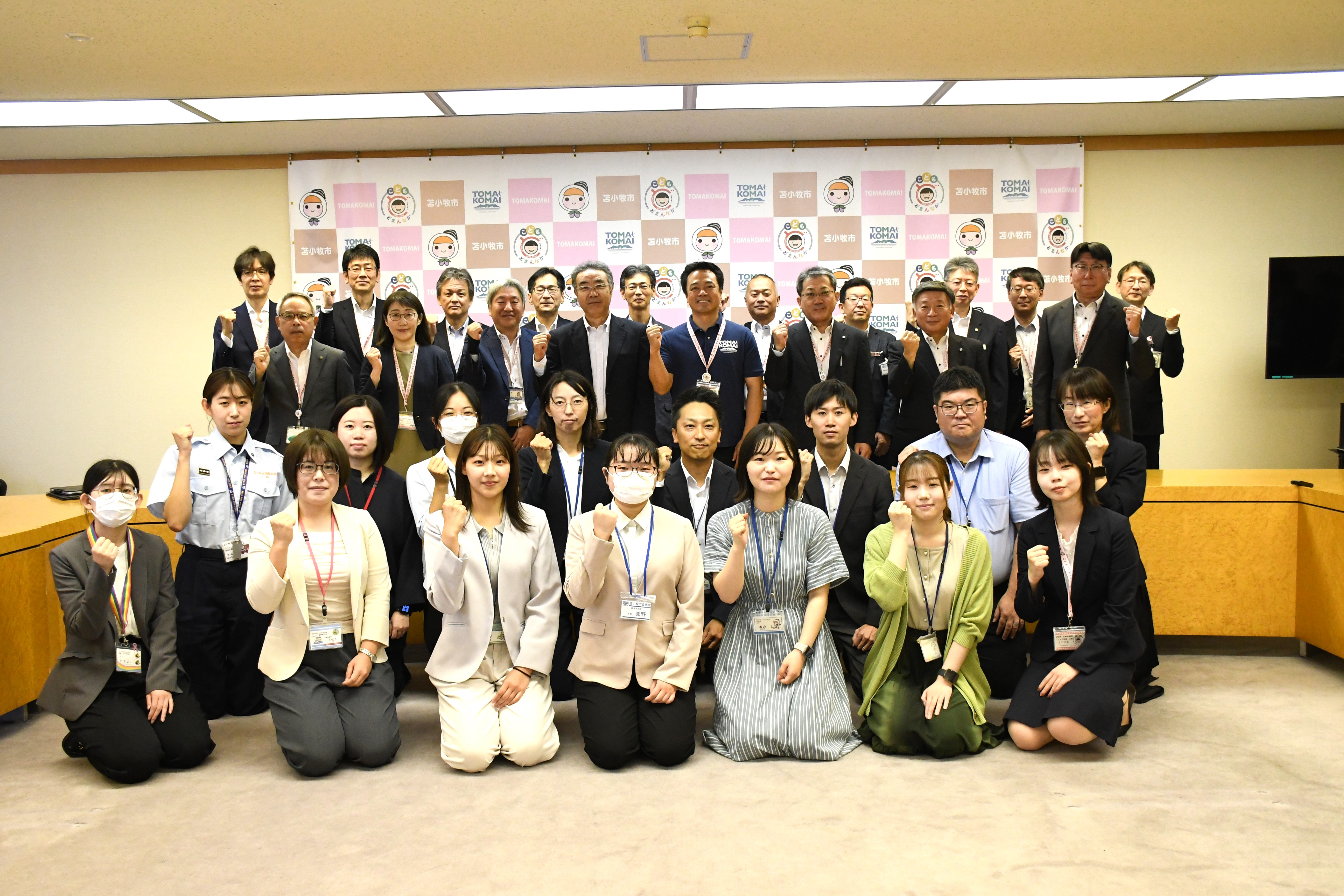 7月27日(日)から東京都、茨城県水戸市を苫小牧市こども研修団として訪れる皆さんの決意表明式が行われました。本市を代表して、スマートシティのまちづくりについての特徴や歴史、文化、まちの取り組みなど、さまざまなことを学んで来てください。