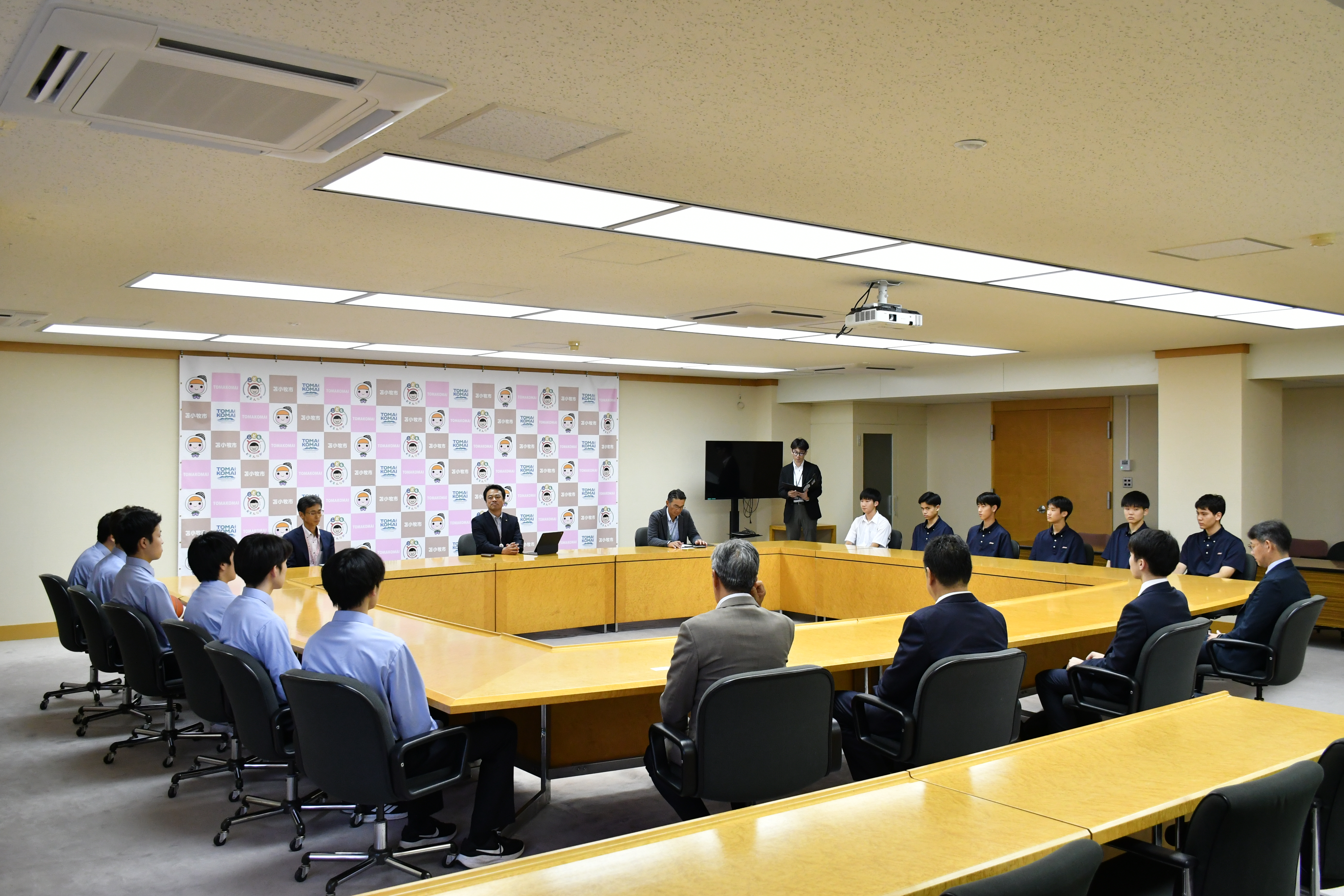 7月25日(金)から和歌山県で行われる第30回高野山旗全国学童軟式野球大会に出場する、拓勇ファイターズ球団選手の表敬訪問を受けました。選手たちが全力を出し切ってくれることを願い、エールを送りました。