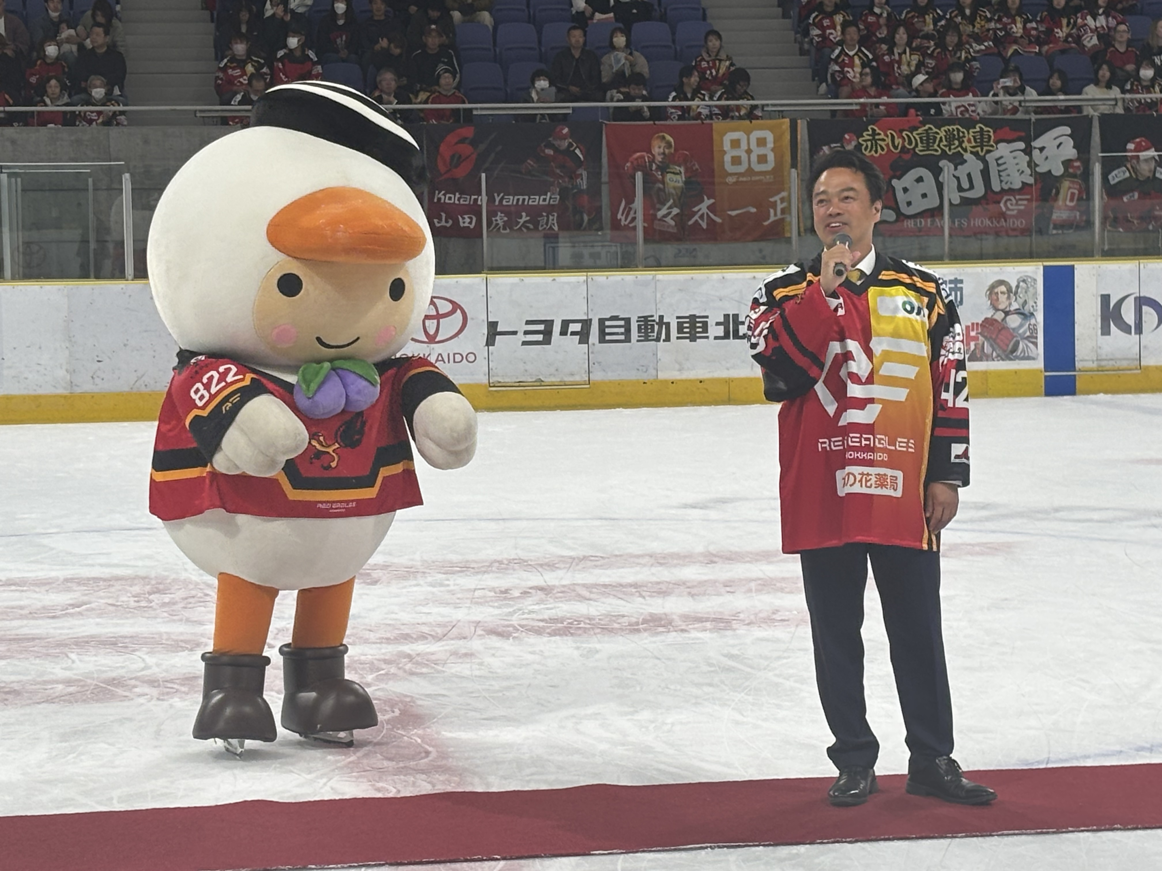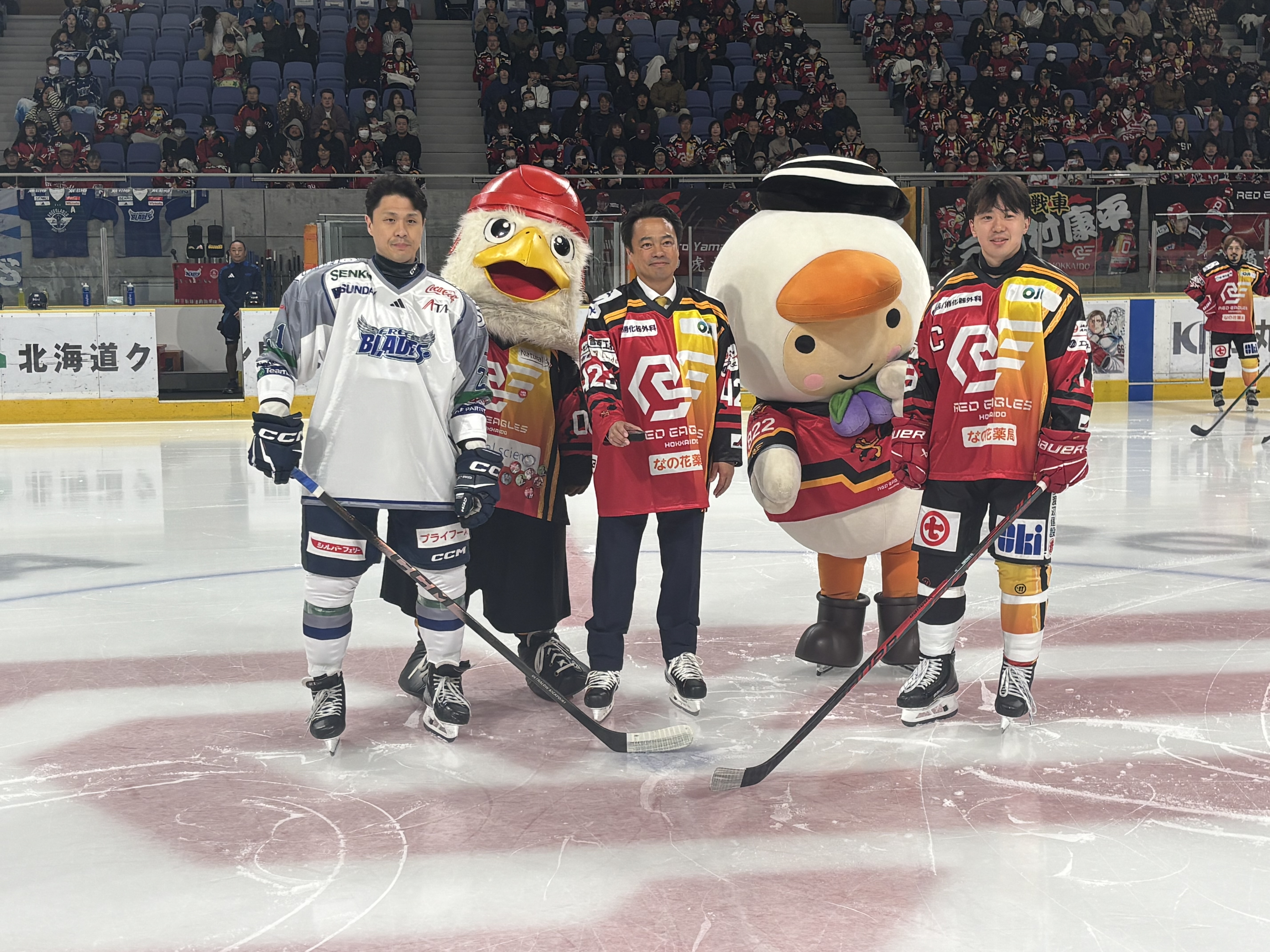 レッドイーグルス北海道の地元苫小牧でのレギュラーシーズン最終戦のフェイスオフとシュートチャレンジに参加させていただきました。