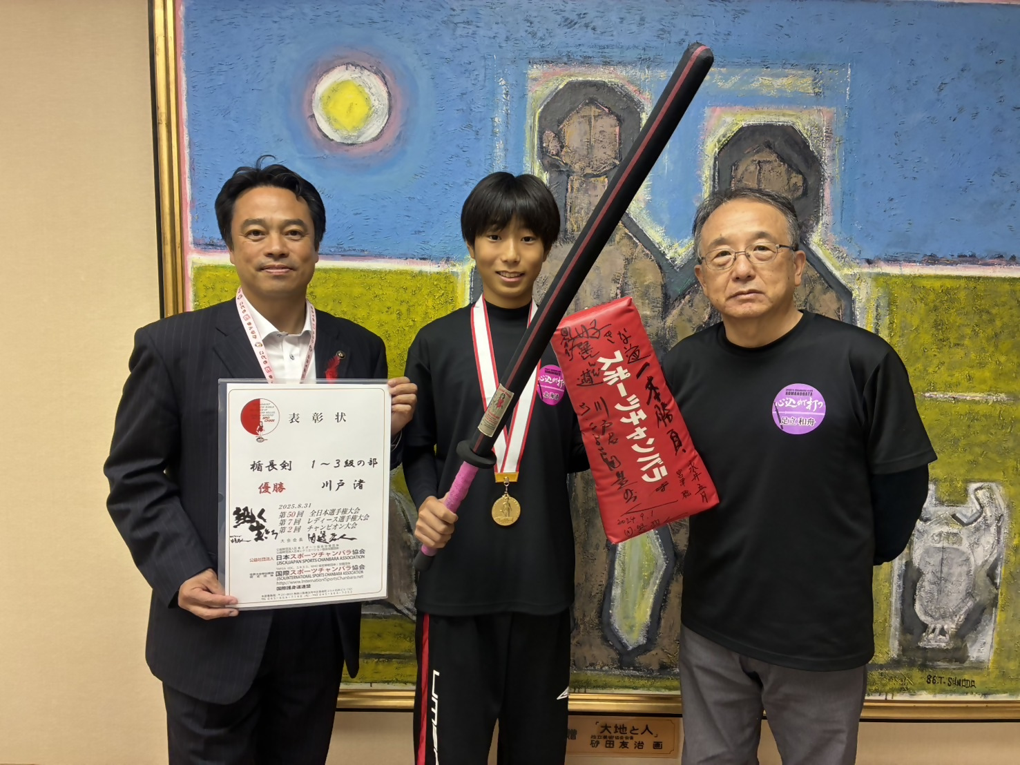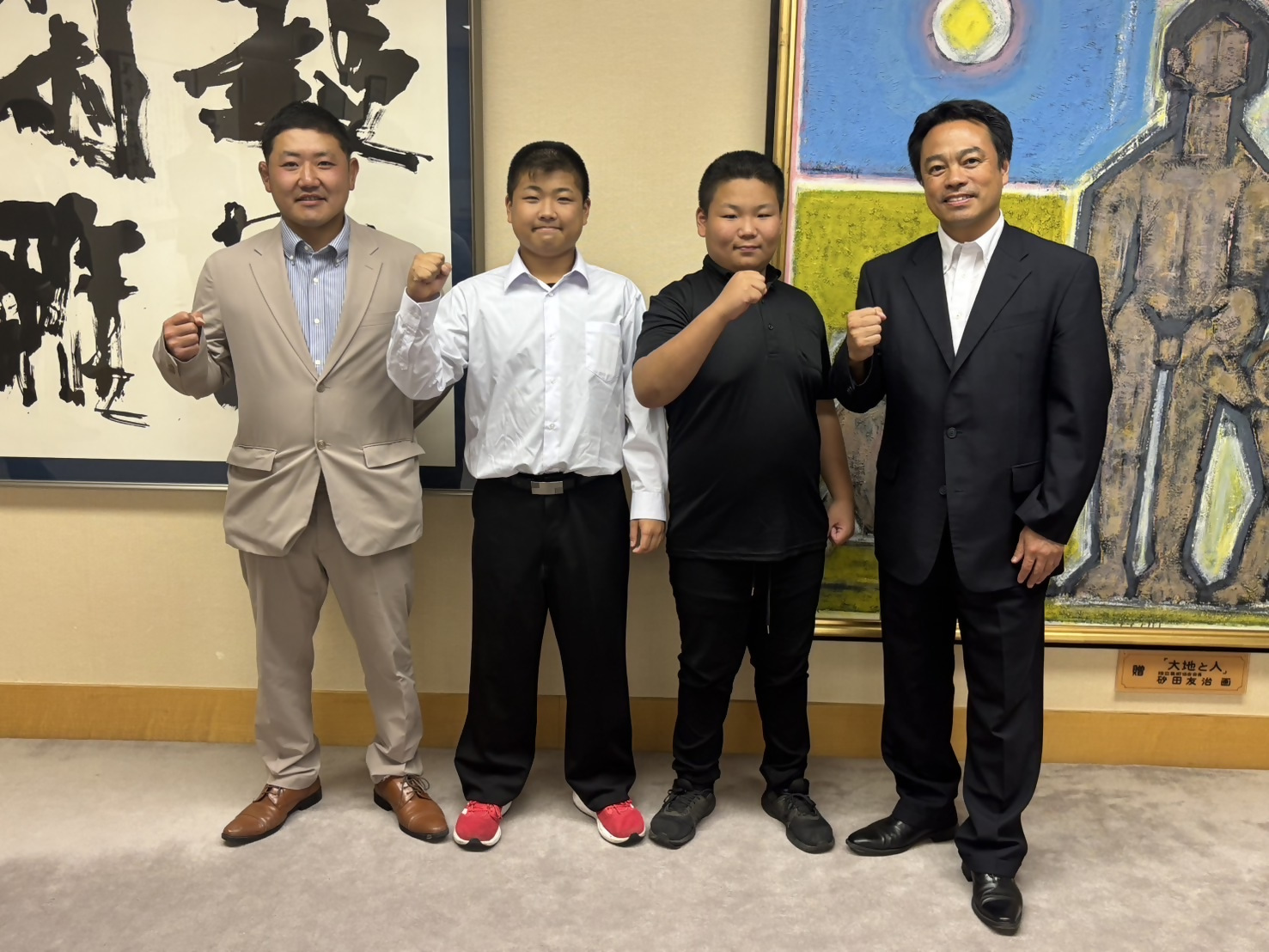 8月21日(木)から東京武道館で行われる、第25回全日本少年少女空手道選手権大会に出場する選手の表敬訪問を受けました。日頃の練習の成果を遺憾なく発揮して、全力を出し切ってくれることを願っています。