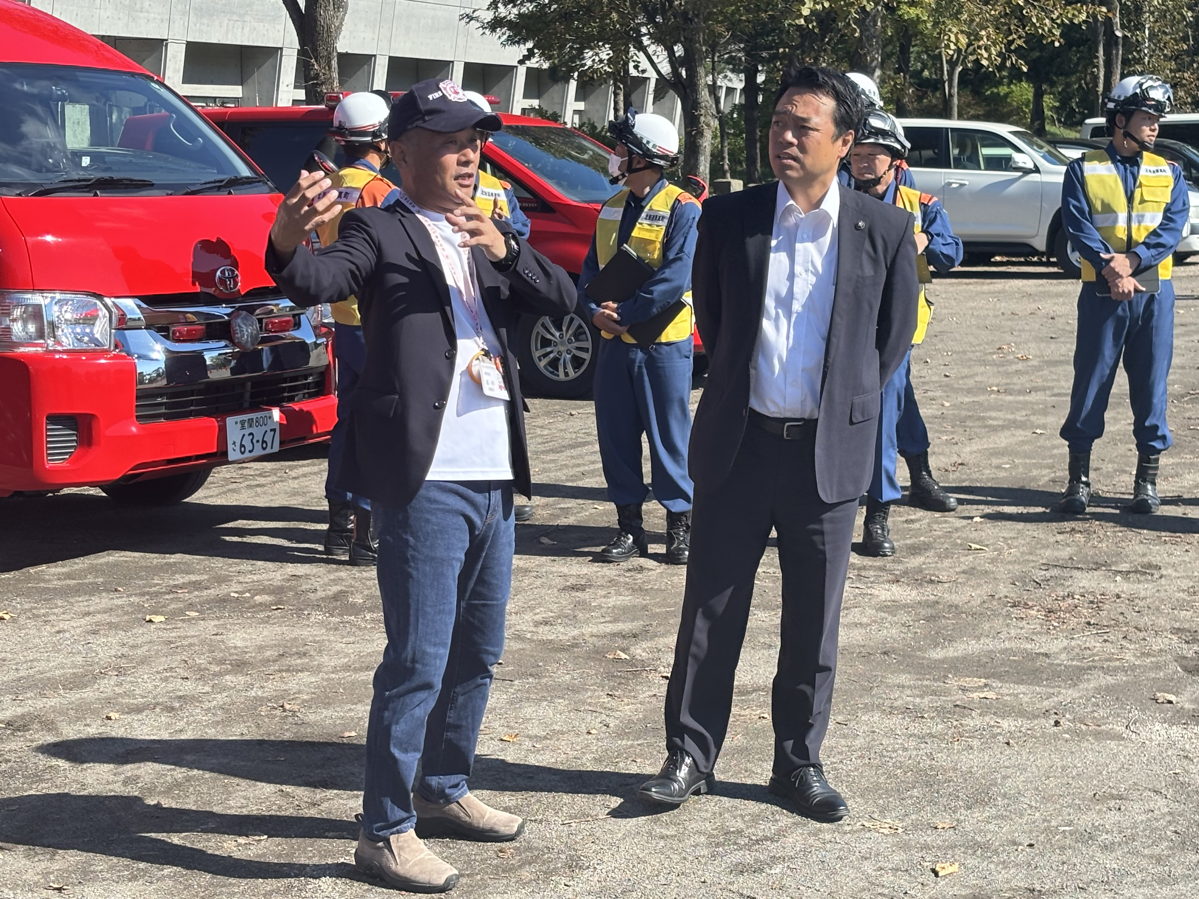 備えるフェスタ2025inとまこまいが総合体育館で行われ、会場を視察しました。防災意識の向上を目的に、楽しみながら日々の備えを学べるとても重要なイベントだと感じています。参加いただいた多くの関係機関の皆さんのご協力に感謝申し上げます。今後とも連携を深め、災害に強いまちづくりを共に進めてまいりたいと存じます。