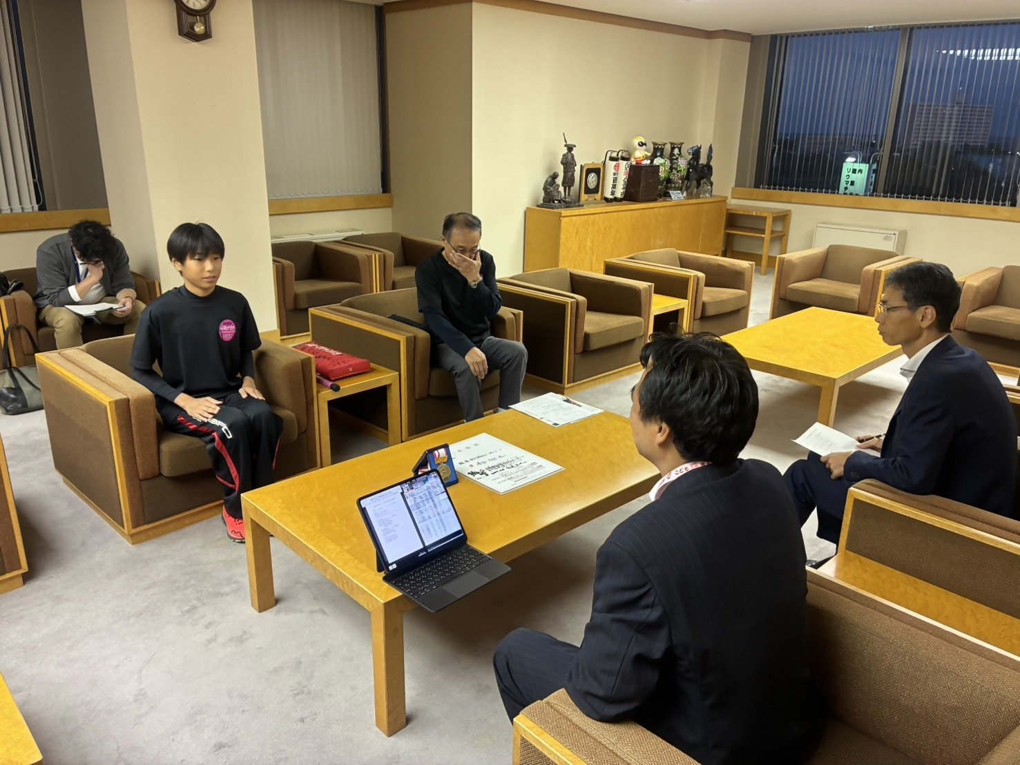 新たに設立された中学生を対象としたアイスホッケークラブ「TOMAHAWKS」関係者による表敬訪問を受けました。選手人口の減少が続く昨今、他のクラブチームと共に多くの子供たちの夢や成長の場となり、地域のスポーツ振興にもつながることを期待しています。